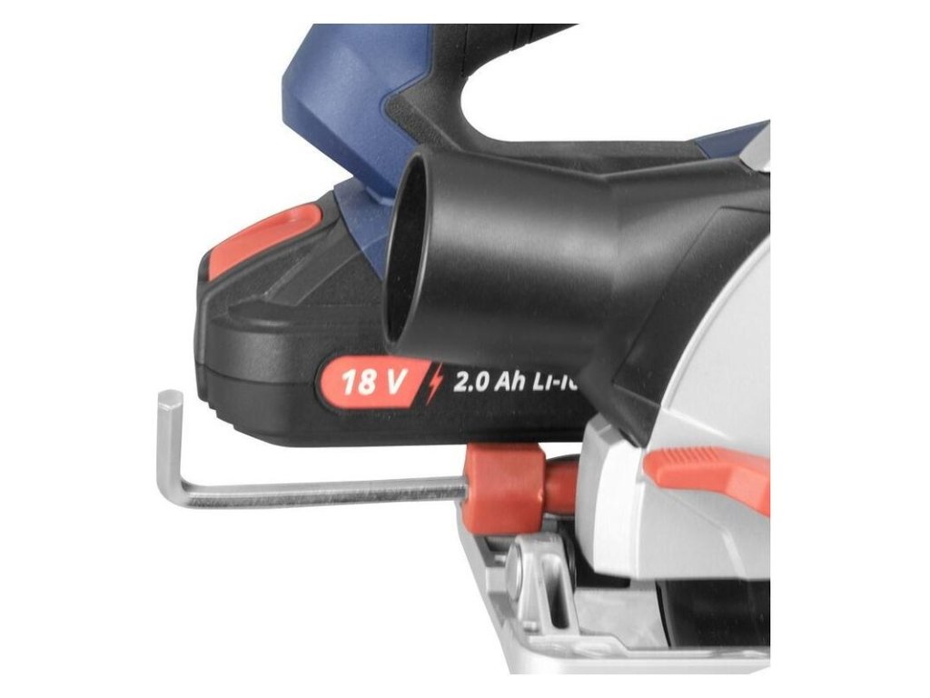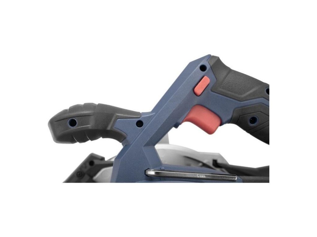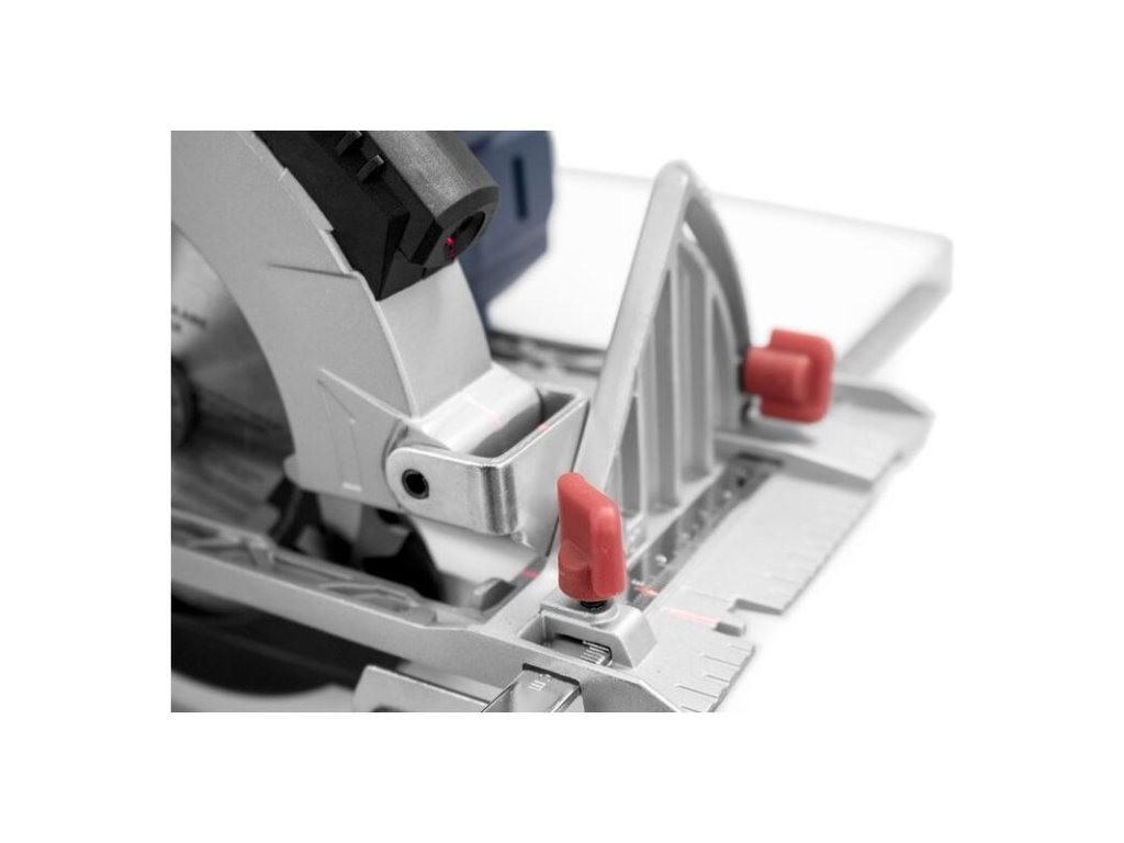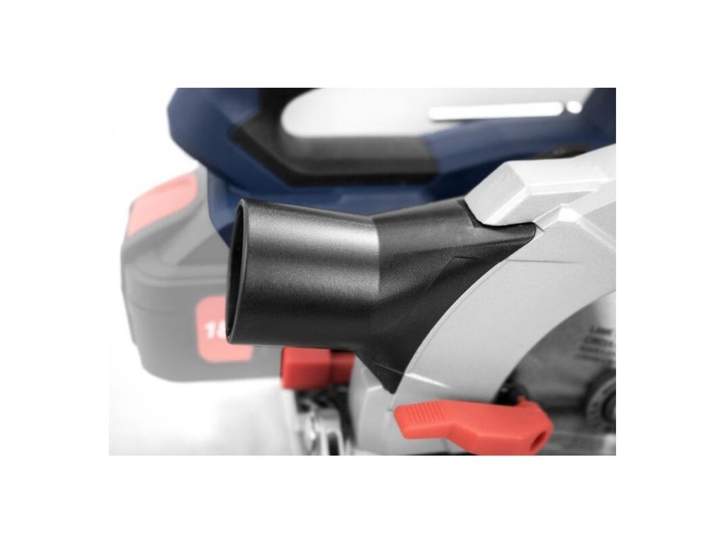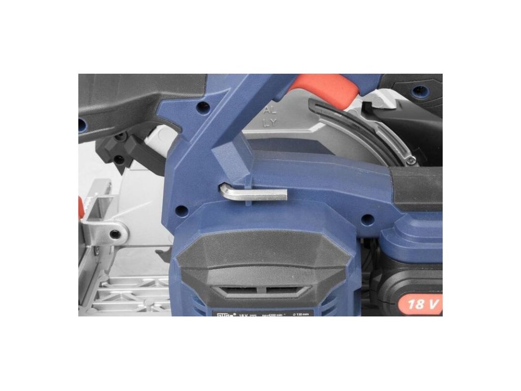Akumulátorová okružná píla zo série akumulátorového náradia 18V E3 na rezanie panelov, drevotrieskových dosák a drevných materiálov. Silný vysoko výkonný motor. Horčíkový ochranný kryt. Laser na presné pozdĺžne rezy. Rýchla, jednoduchá výmena pílového kotúča. Maximálna hĺbka rezu 48 mm pri 90°. Pogumovaná rukoväť pre bezpečnú prácu. Pílový kotúč 150x1,6x10 24Z HM, paralelný doraz. Aretácia vretena, rýchlo stop, ukazovateľ stavu nabitia batérie. Bez batérie a nabíjačky.