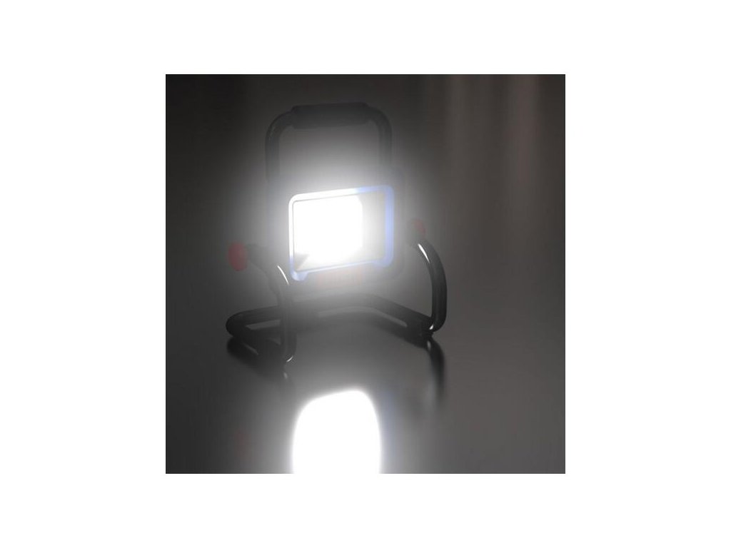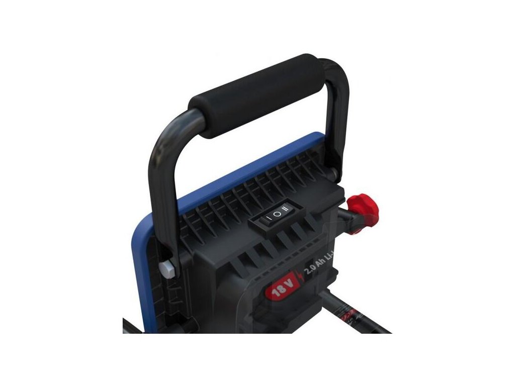 Akumulátorový LED reflektor zo série akumulátorového náradia 18V E3. Optimálne osvetlenie zabezpečuje 100 výkonných SMD LED diód. 2 svetelné toky: 2000 lm alebo 4800 lm. Teplota chromatickosti 6500 K (studená biela). Individuálne nastaviteľný uhol svietenia v rozsahu 120°. Držadlo na prenášanie s mäkkým úchytom. Na mobilné použitie okolo domu, v dielni alebo garáži. Bez akumulátora a nabíjačky.