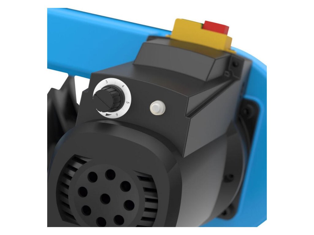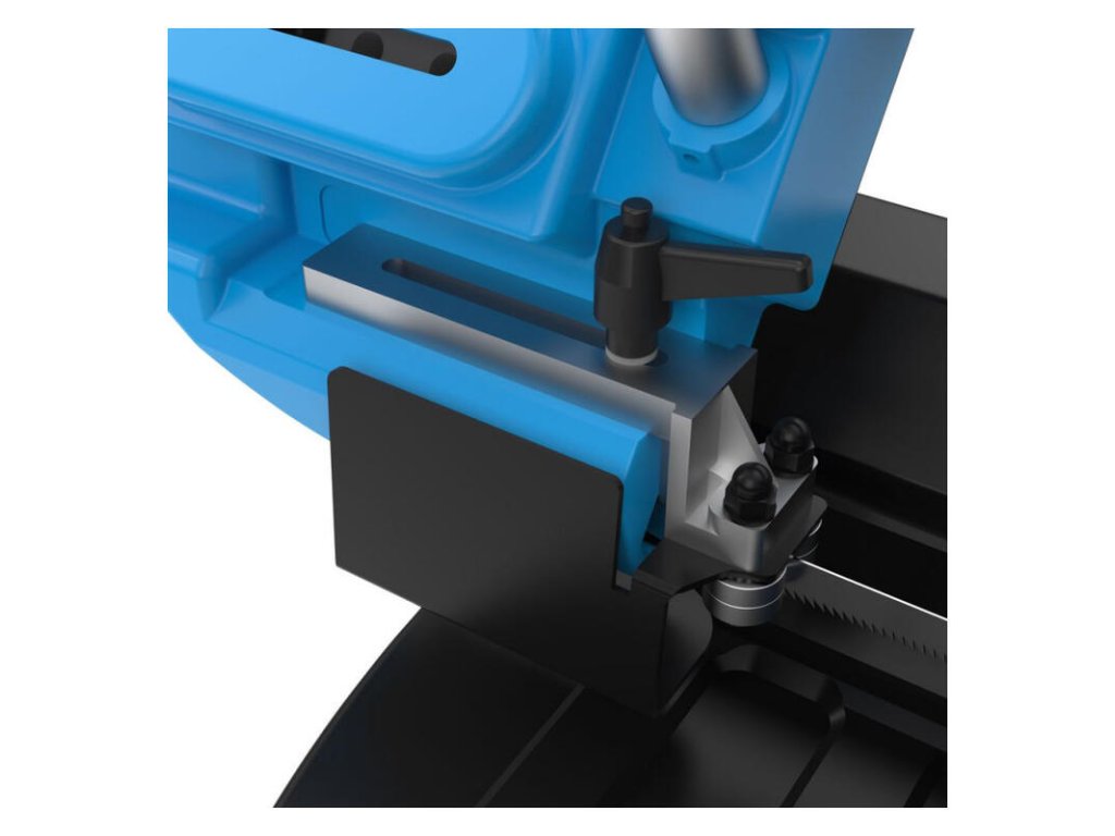 Vhodná na rezanie ocele, liatiny, hliníka, medi, ušľachtilej ocele, PVC, teflónu. Výkyvná hlava píly umožňuje rezanie do uhla 0° - 60°. Vybavenie: Potenciometer na nastavenie rýchlosti pílového pásu, zarážka, zapínač/vypínač, poistka proti preťaženiu, zverák, stupnica 0° - 60°, transportná poistka, pílový pás.