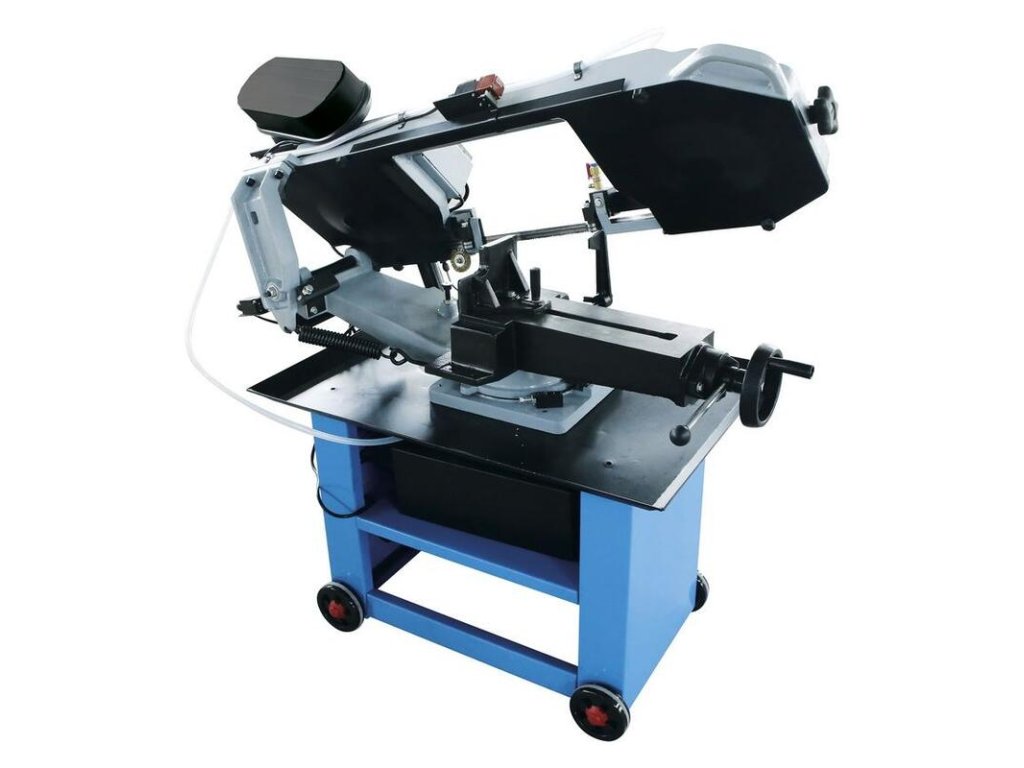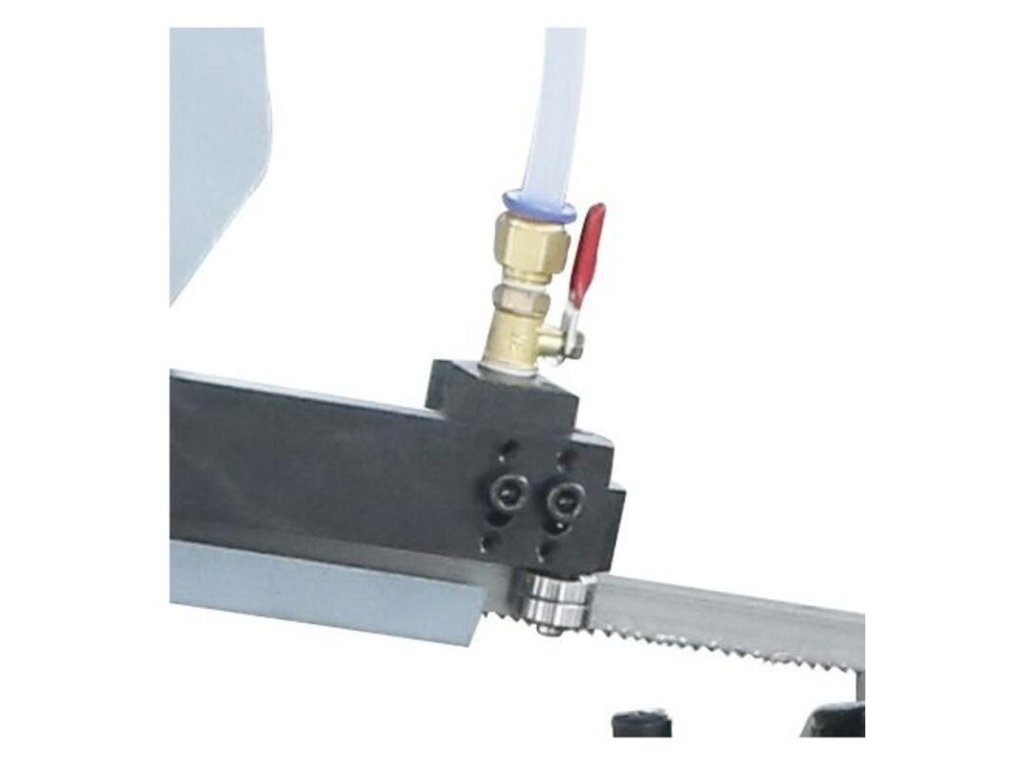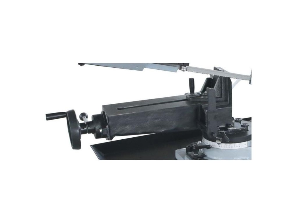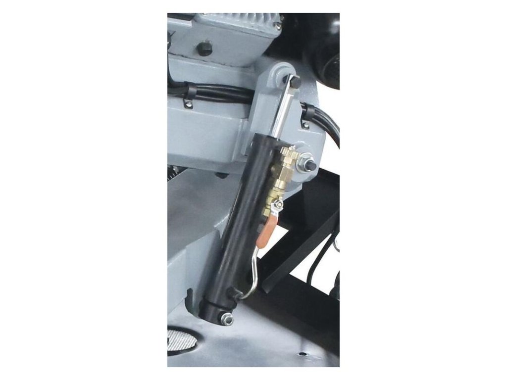 Pásová píla na kov s konštrukciou z liatiny. 10-násobné vedenie pílového pásu s guľôčkovými ložiskami. Rýchloupínací zverák s excentrickým upínacím systémom, zarážka obrobku, bimetalový pílový pás. Chladiace zariadenie, automatický koncový vypínač. Kefka na piliny. Otočný rám píly.