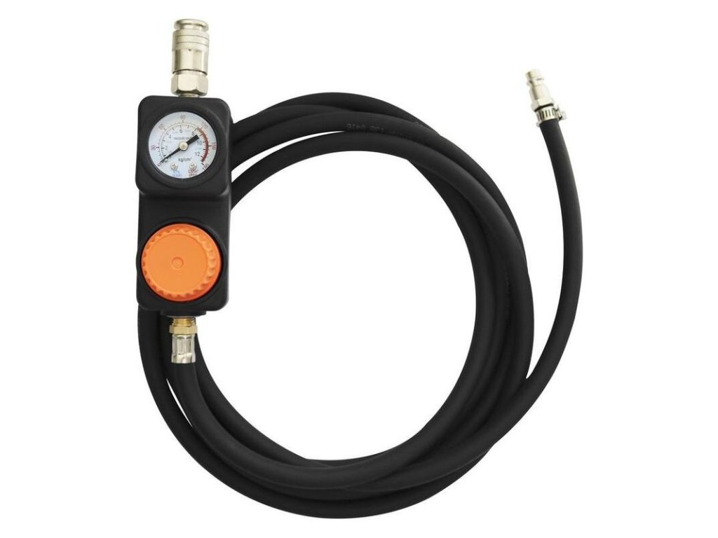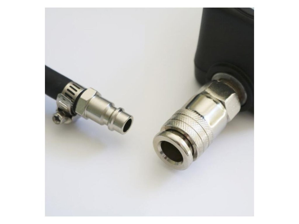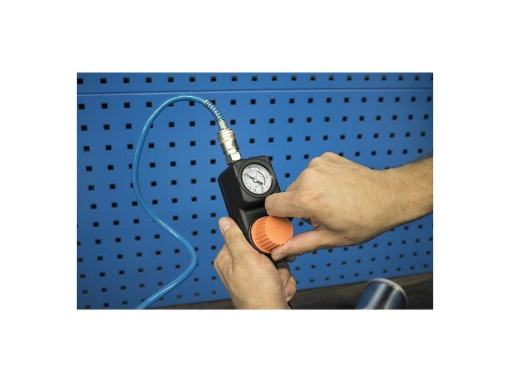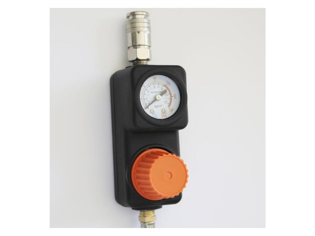 Mobilný redukčný ventil použiteľný na bežné pneumatické náradie, napríklad striekacie pištole na farbu, pneumatické sponkovačky a podobne. Plynulé nastavenie, integrovaná rýchlospojka.