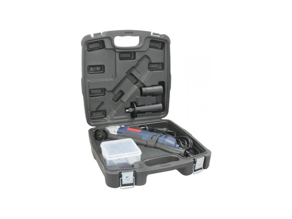 Náradie zo série elektrického náradia Q9. Pílenie, oddeľovanie, škrabanie a brúsenie iba jedným zariadením. Elektronické nastavenie počtu otáčok alebo kmitov. Jednoduchá a rýchla výmena nástavcov s magnetickým upínacím krúžkom pre ľahkú výmenu nástroja. Robustná rukoväť z nylonu PA6-GF30 s mäkkým povrchom. Odolná hliníková prevodová hlava. Pripojenie pre externé odsávacie zariadenie. Prídavná rukoväť s možnosťou upevnenia v dvoch pozíciách. Mnohostranné využitie predovšetkým na brúsenie ťažko prístupných miest napríklad rohy, hrany, malé plochy.