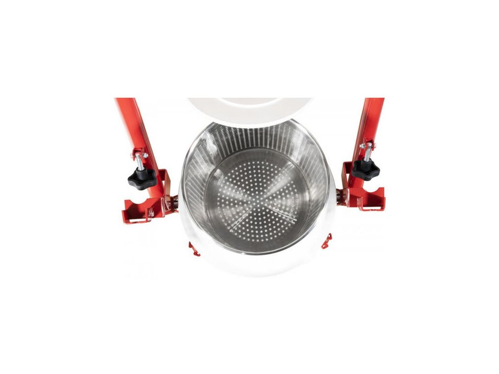 Lis na ovocie s mechanickým pohonom cez oceľové vreteno s ľahkým chodom. Vhodný na spracovanie jabĺk, hrušiek a iného ovocia. Lisovací kôš z perforovanej nehrdzavejúcej ocele, otočná a vyberateľná zberná miska, natretá zdravotne neškodnou potravinárskou farbou, masívny oceľový rám. Otočná tlačná doska pre lepšie plnenie. Jednoduché čistenie vďaka odoberateľnému lisovaciemu košu.
