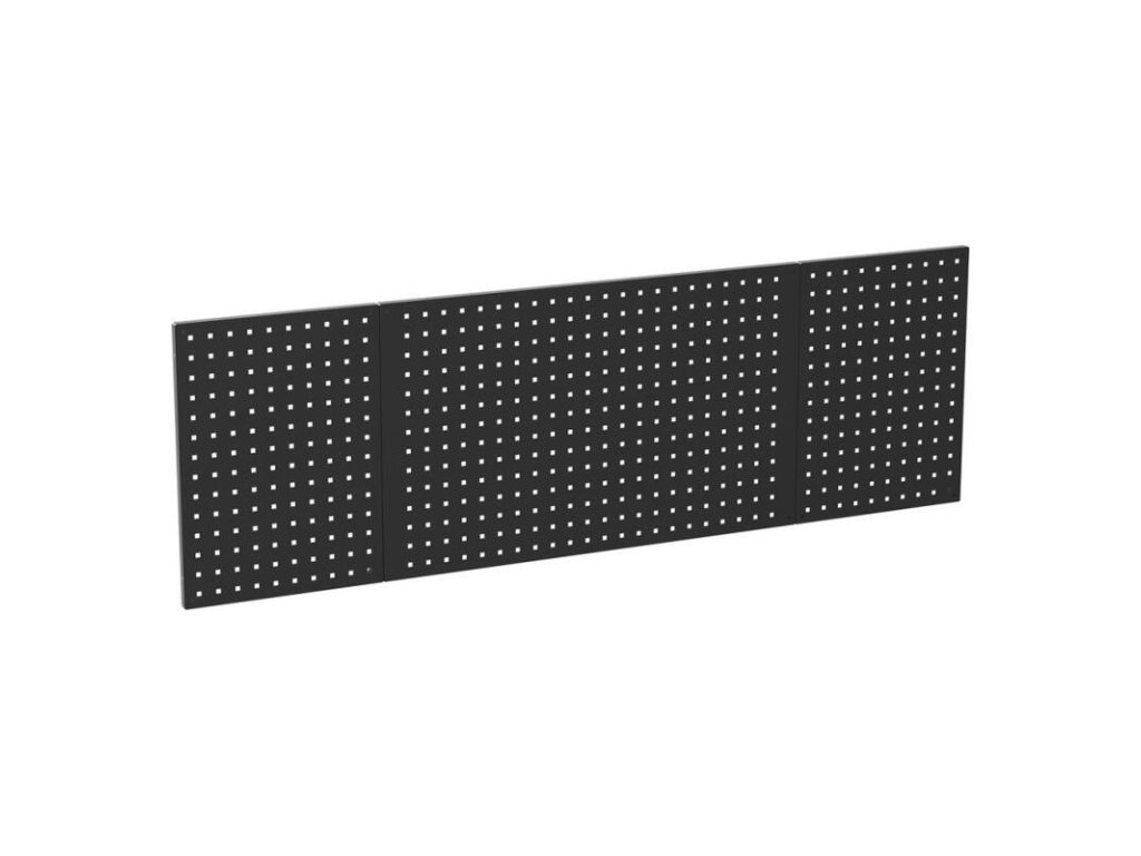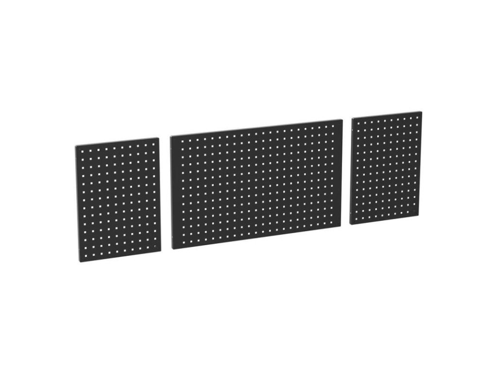 Trojdielna perforovaná stena XL je dokonalým doplnkom radu Güde Eco-Line, s ktorým sa dá optimálne využiť priestor na stene nad dvoma pracovnými stolmi XL od výrobcu GÜDE. Praktické rozdelenie na tri časti, možnosť montáže aj samostatne. Ideálne v kombinácii s vhodnou nástennou skrinkou. Štandardizovaná štvorcová perforácia 9 x 9 mm, vzdialenosť stredov otvorov 38 mm. Oceľový plech s práškovou povrchovou úpravou.