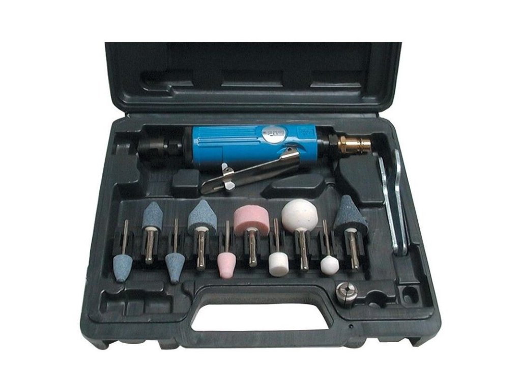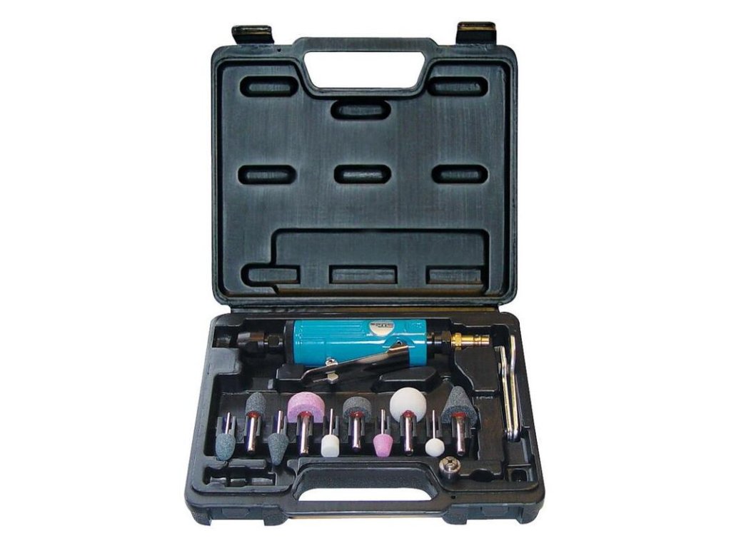 Popis produktu GÜDE Pneumatická priama brúska, 15-dielna sada