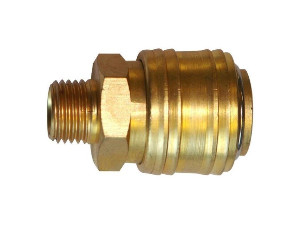 Mosadzná hadicová rýchlospojka so závitom. V balení 1 ks.