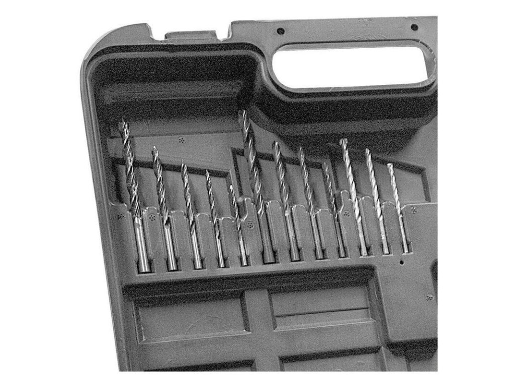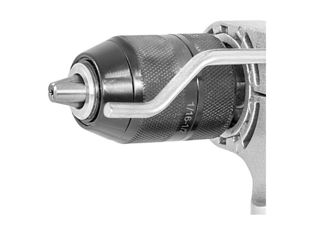 Príklepová vŕtačka zo série elektrického náradia Q9. Dvojstupňová prevodovka, plynulá regulácia otáčok, ľavý / pravý chod. Uzamykateľný spínač pre nepretržitú prevádzku. Robustné kovové puzdro prevodovky, kovové rýchloupínacie skľučovadlo bez náradia. Mäkká rukoväť, odnímateľná kovová prídavná rukoväť (vhodná pre pravákov aj ľavákov). Stabilný nastaviteľný hĺbkový doraz. Kufor s kovovými sponami, vrtáky do dreva Ø 3/4/5/6/8, HM vrtáky do kameňa Ø 4/5/6, vrtáky do kovu HSS Ø 4/5/6/8.