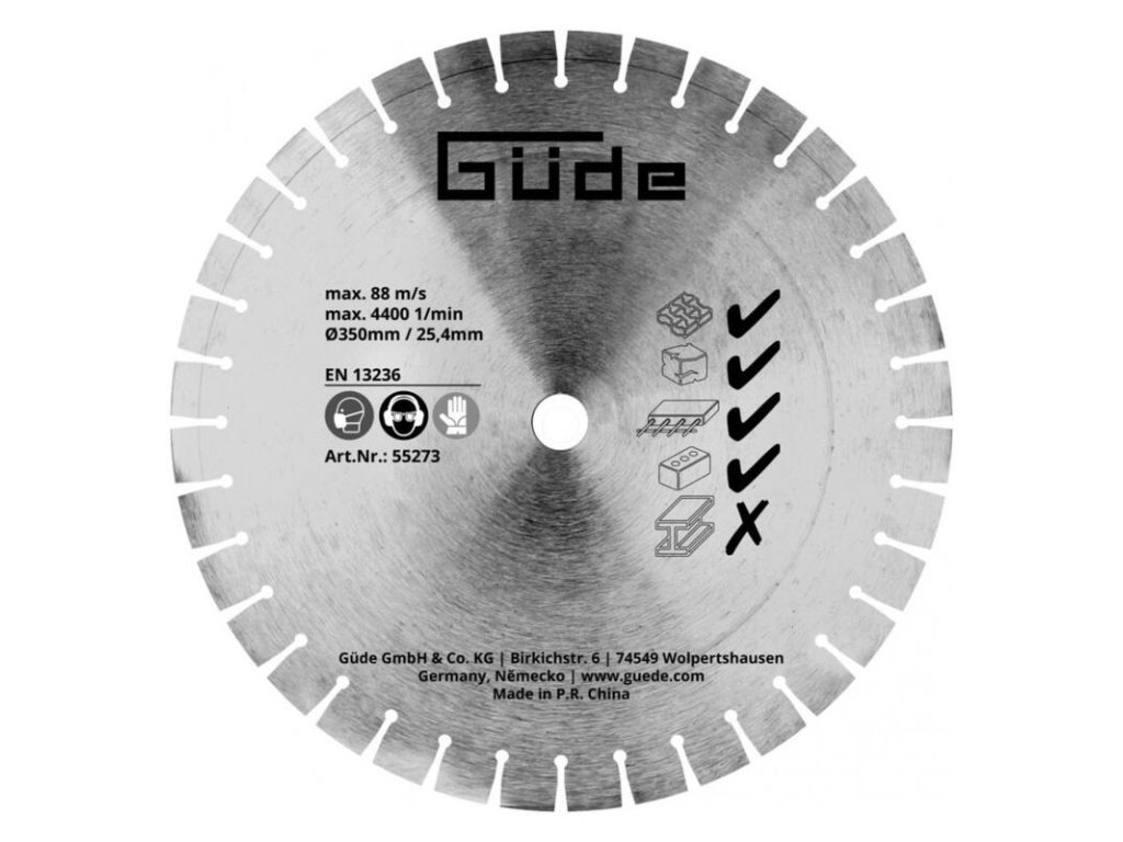 Segmentovaný diamantový rezný kotúč na betón GÜDE 350 mm