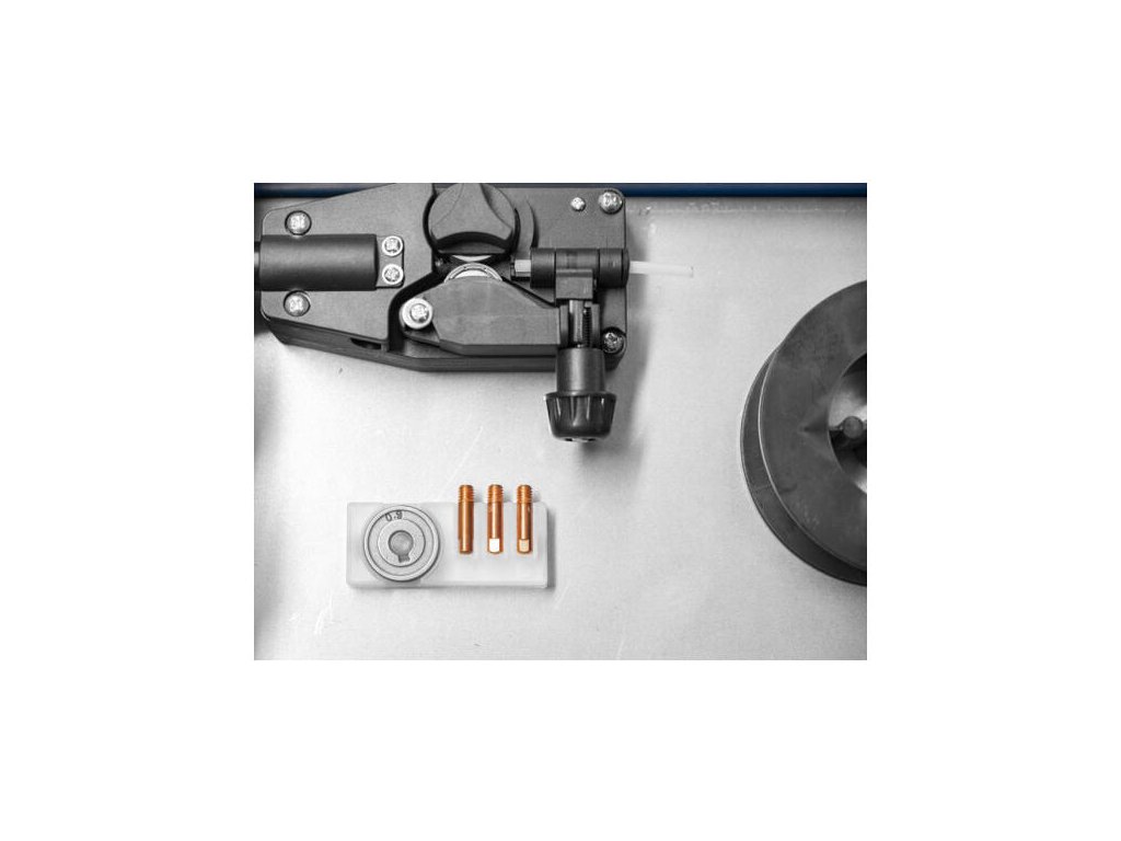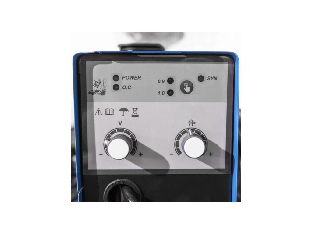 Invertorová zváračka na zváranie trubičkovým drôtom do hrúbky 0,9 mm (malá cievka). Plášť z oceľového plechu s práškovým nástrekom. Tepelná ochrana proti preťaženiu, chladiaci ventilátor, chladenie s núteným obehom. Uzemňovací kábel s ukostrovacou svorkou, hadicové vedenie s priamym pripojením. Drôtená kefa s kladivom na strusku. Vrátane plneného drôtu (0,9 mm/0,45 kg), náhradných trysiek (3x elektrické trysky 0,9 mm), náhradného posuvného valca (0,9 mm). Kompaktná invertorová zváračka s inovatívnou technológiou plneného drôtu. S IGBT pre väčší výkon, menšiu produkciu tepla, vyššiu účinnosť a menšiu hlučnosť. Jednoduché a efektívne zváranie špeciálnym drôtom, v ktorom je uzavretý ochranný plyn v práškovej forme. S novým, inovatívnym, synergicky regulovaným podávaním drôtu sa rýchlosť podávania drôtu automaticky nastaví na optimálnu hodnotu. Rýchlosť podávania drôtu je možné alternatívne regulovať aj manuálne. Vhodná na príležitostné použitie v menšom rozsahu v dielni a pri montáži, pretože nie je potrebná plynová fľaša. Určená na stredné hrúbky materiálu v rozpätí 1,5 až 8 mm. Plynule nastaviteľná od 25 do 120 A. Vhodná aj na zváranie vonku vo veternom prostredí, pretože ochranný plyn nie je možné odfúknuť. Je okamžite pripravená na použitie s pripojeným balíkom hadíc, ukostrovacou svorkou, vrátane 0,45 kg zváracieho drôtu, 3 náhradných trysiek 0,9 mm a náhradného podávacieho valčeka 0,9 mm.