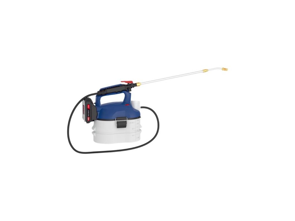 Akumulátorový rozprašovač zo skupiny akumulátorových systémov 18V E3 na použitie okolo domu a v záhrade. Teleskopická rúrka s mosadznou tryskou 46 - 73 cm, odmerka, rukoväť, 110 cm rozprašovacia hadica, 3 l nádoba, nosný popruh, rúrka s aretačným ventilom pre trvalú prevádzku. Vrátane akumulátora a nabíjačky.
