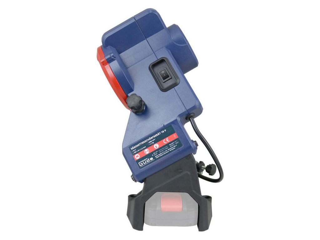 Akumulátorová brúska na reťaze zo série akumulátorového náradia 18V E3. Uhol ostrenia 2x35°, nastaviteľné ručným kolieskom, pevný uhol čela 60°, obmedzená hĺbka brúsenia, vodiaca lišta reťaze s nastaviteľným dorazom, fixovanie reťaze upínacou pákou, pre všetky bežné typy reťazí (uhol čela 60°). Na stacionárnu montáž. LED pracovné svetlo. Bez batérie a nabíjačky.