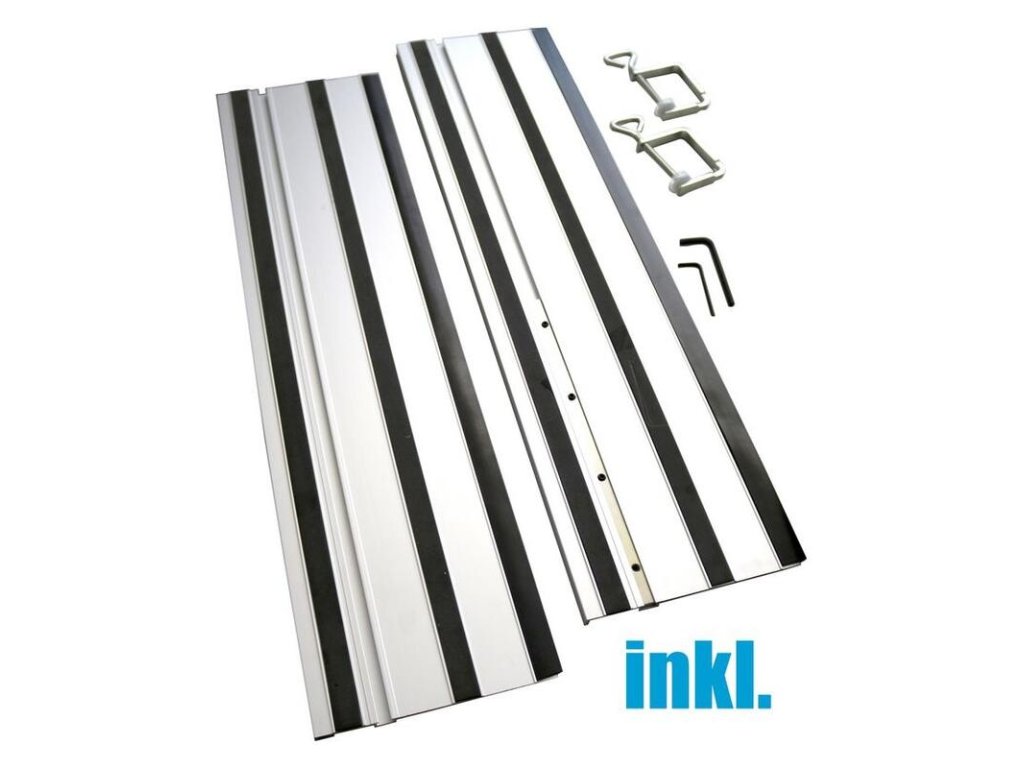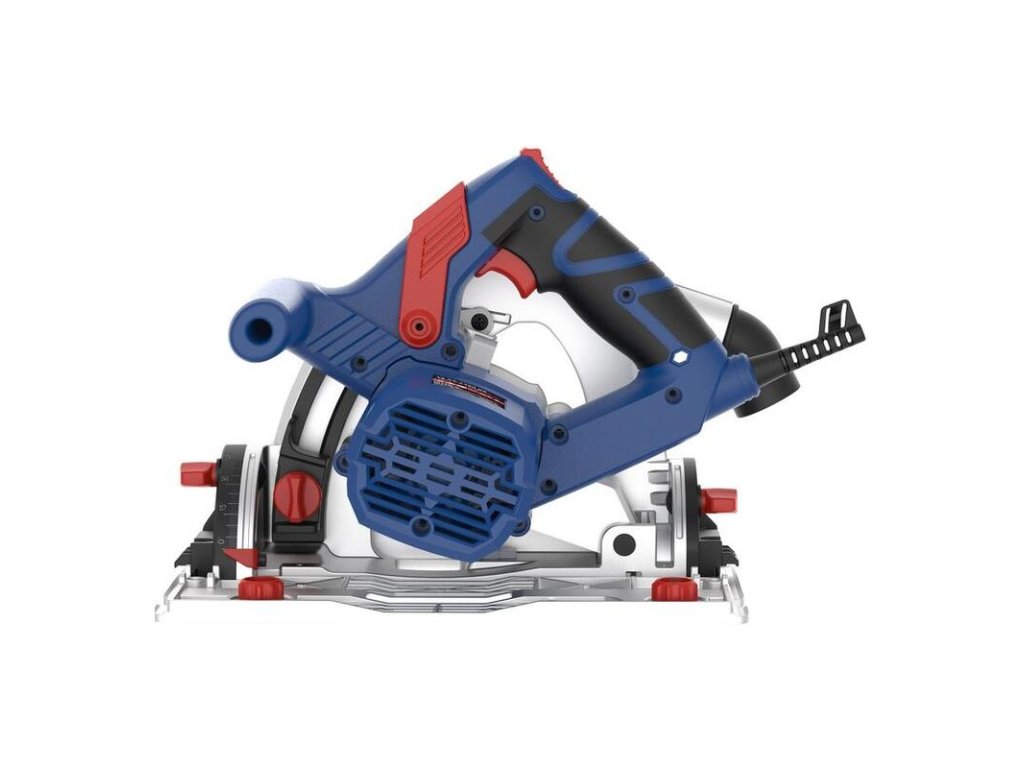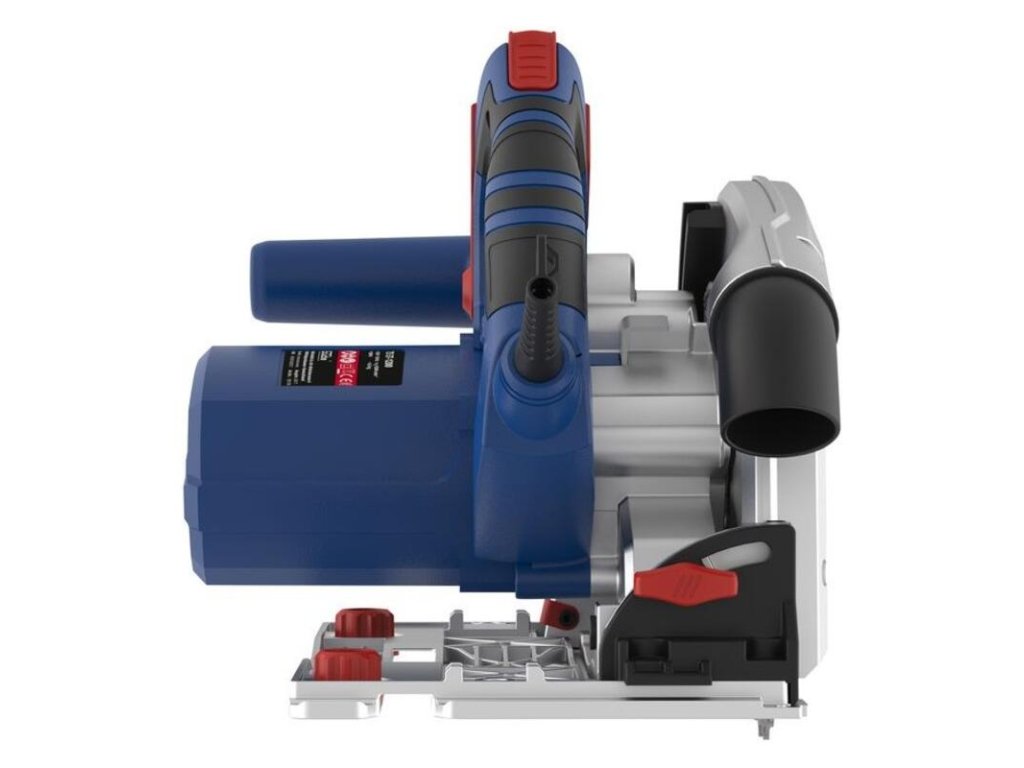 Ponorná píla s vodiacimi lištami a paralelným hĺbkovým mechanizmom pre presné pozdĺžne a šikmé rezy. Plochý kryt umožňuje rezanie aj v tesnej blízkosti stien (15 mm). Nastavenie rezných uhlov od 0° do +47°. Plynulé nastavenie hĺbky rezu. Aretácia pílového kotúča. Bezpečnostný vypínač s blokovaním zapnutia. Nastavovacie skrutky pre presné nastavenie. Protišmyková rukoväť s mäkkým povrchom. Prípojka na odsávanie prachu. Vhodná na vytvorenie dilatačných škár v podlahách, presné ponorné rezy, rezanie sadrokartónu. 1 x HM pílový kotúč 24 zubov, 2 x vodiaca lišta 700 mm, 1 x spojka lišty, 2 x svorka.