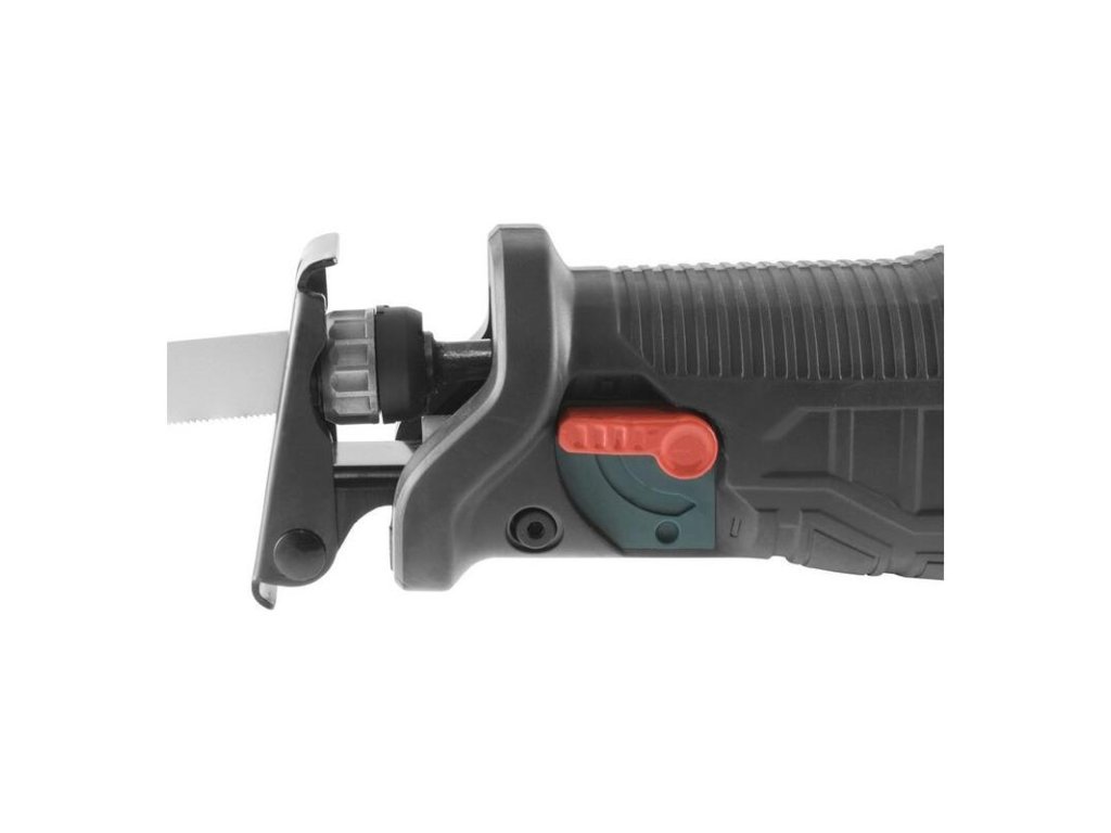 - Akumulátorová chvostová píla s variabilnou reguláciou rýchlosti, mäkkým nábehom a rýchlym zastavením.