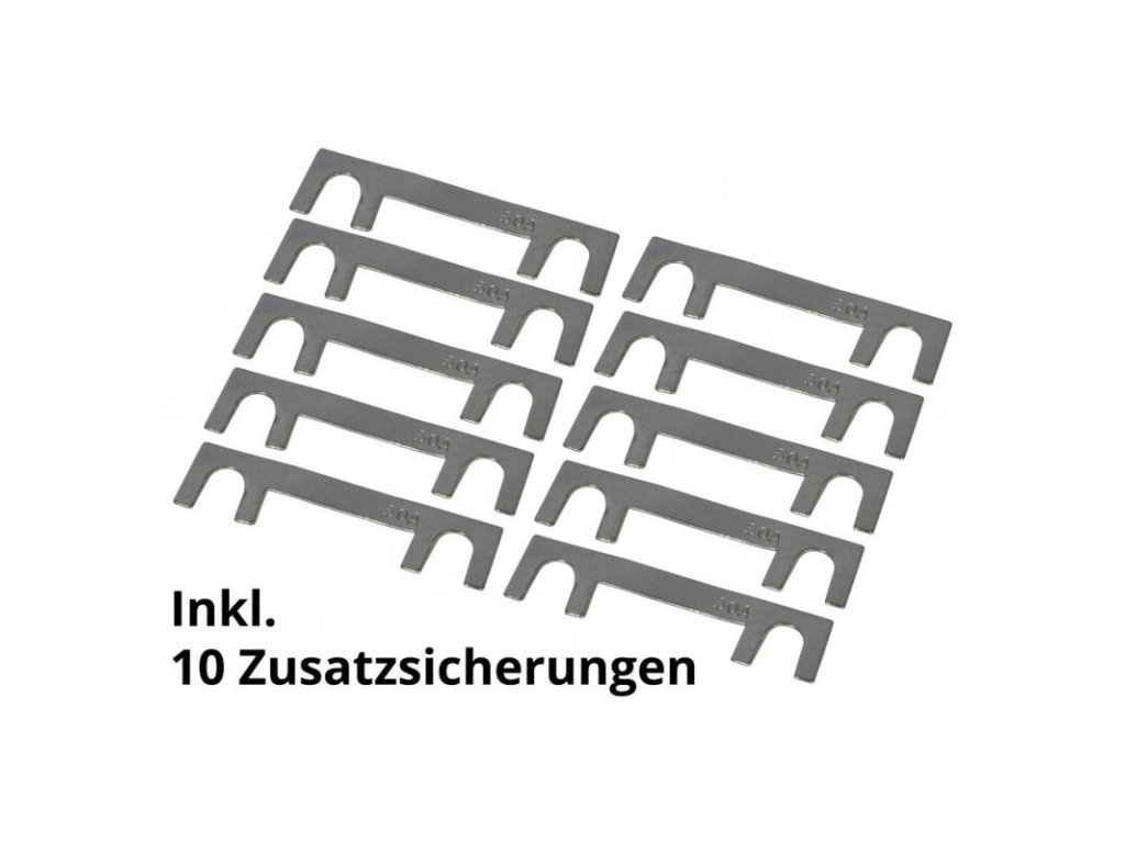 - Bezšumový analógový ampérový displej, vrátane 10 poistiek (100 A).