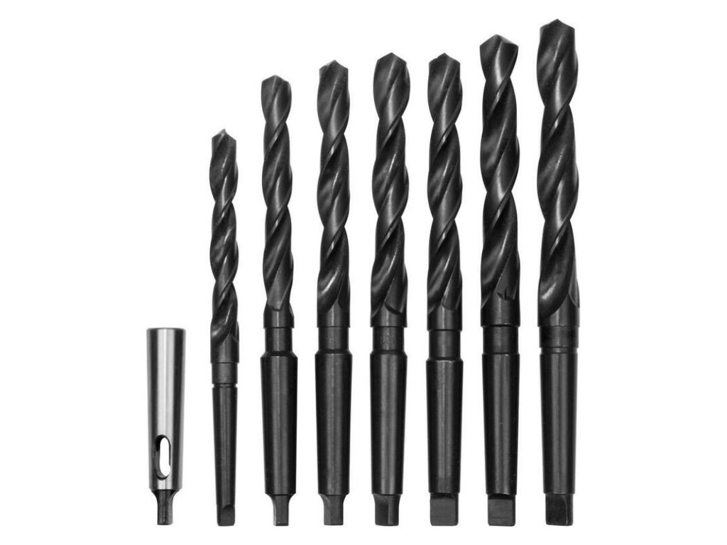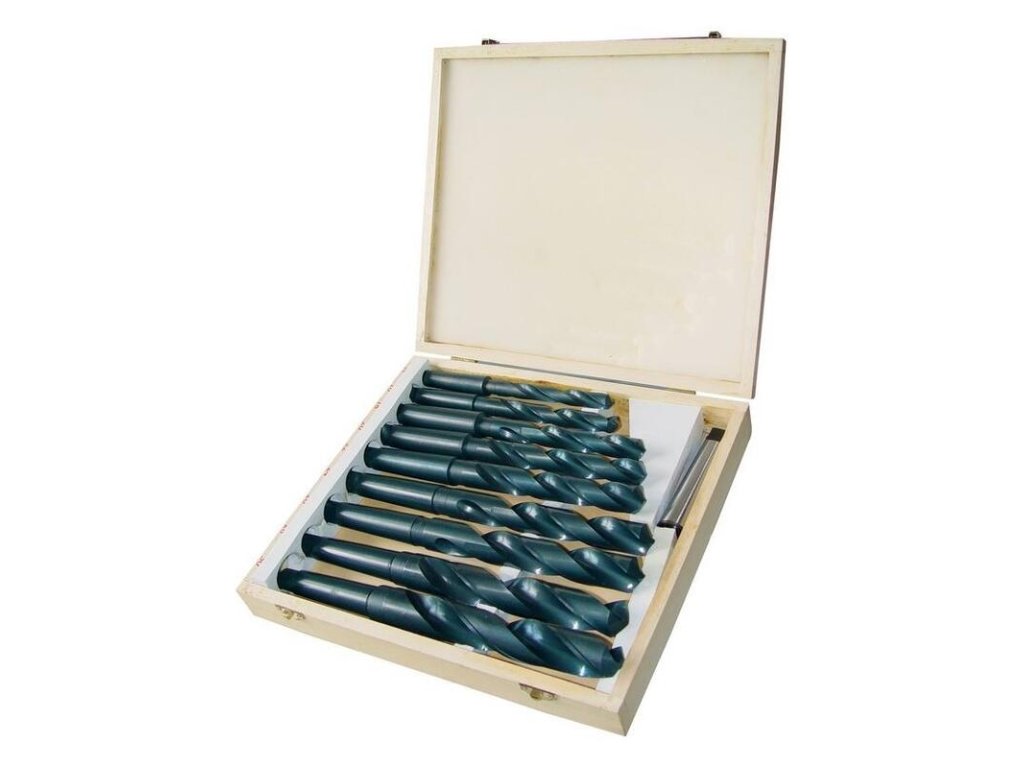 Vrtáky na vŕtanie do ocele, legovanej/nelegovanej liatej ocele, oceľovej liatiny, liatiny, farebných kovov (mosadz, bronz) a podobne. Z rýchloreznej ocele, s MK upínaním. Redukcia MK1-MK2. V drevenom boxe.