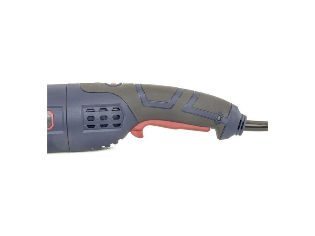 Uhlová brúska zo série elektrického náradia Q9. Mäkká rukoväť pre pohodlnú a bezpečnú prácu. Nízkoprofilové robustné kovové prevedenie hlavy prevodovky zabezpečuje prácu bez vibrácii, aj na ťažko dostupných miestach. Svetelný indikátor napätia. Rýchloupínací ochranný kryt, nastaviteľný bez použitia náradia. Aretácia vretena pre rýchlu a jednoduchú výmenu kotúča. Prídavná rúčka nastaviteľná do 3 pozícií pre flexibilnú a optimálnu pracovnú pohodu. Prírubový kľúč, prídavná rukoväť, rýchloupínací ochranný kryt. Dodáva sa bez kotúča.