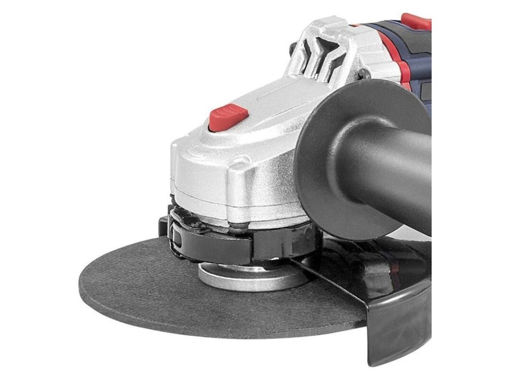 Uhlová brúska zo série elektrického náradia Q9. Mäkká rukoväť pre pohodlnú a bezpečnú prácu. Nízkoprofilové robustné kovové prevedenie hlavy prevodovky zabezpečuje prácu bez vibrácii, aj na ťažko dostupných miestach. Svetelný indikátor napätia. Rýchloupínací ochranný kryt, nastaviteľný bez použitia náradia. Aretácia vretena pre rýchlu a jednoduchú výmenu kotúča. Prídavná rúčka nastaviteľná do 2 pozícií pre flexibilnú a optimálnu pracovnú pohodu. Prírubový kľúč, prídavná rukoväť, rýchloupínací ochranný kryt. Dodáva sa bez kotúča.