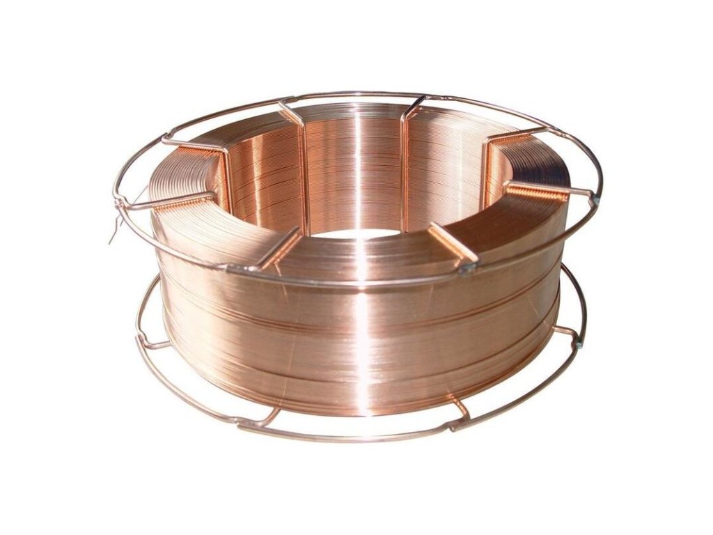 Zvárací oceľový drôt (potiahnutý meďou) na drôtenej cievke, podľa DIN 8559.