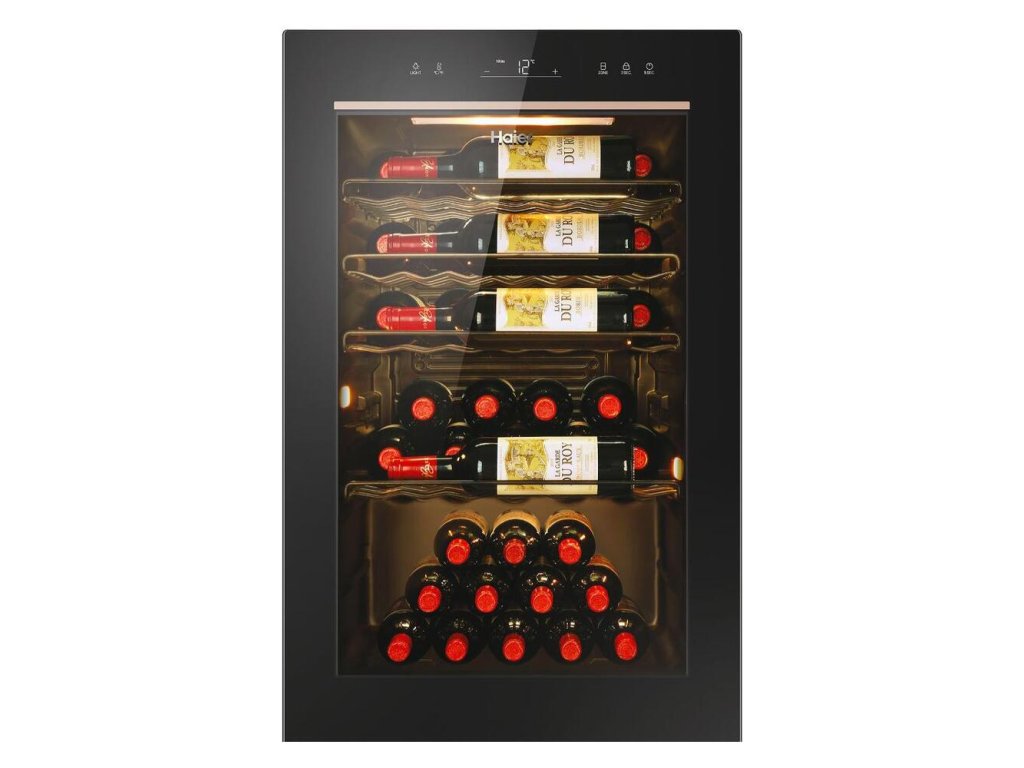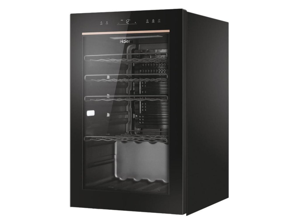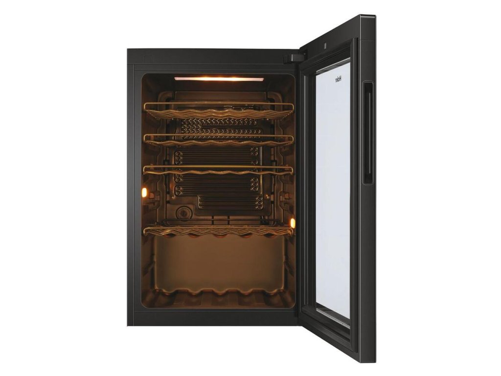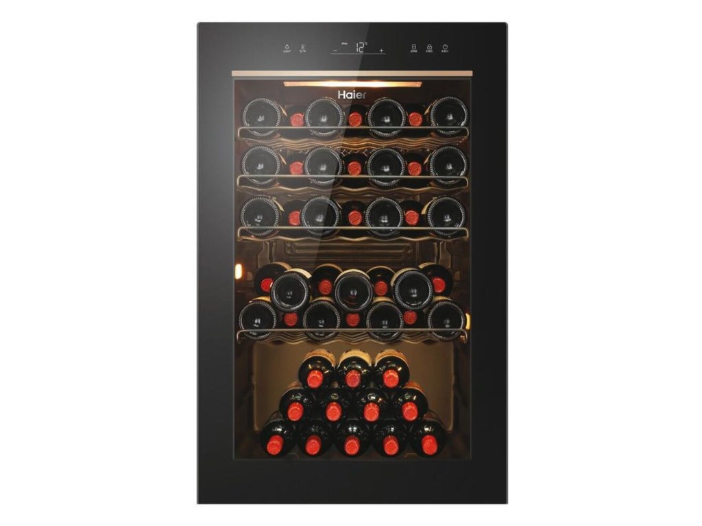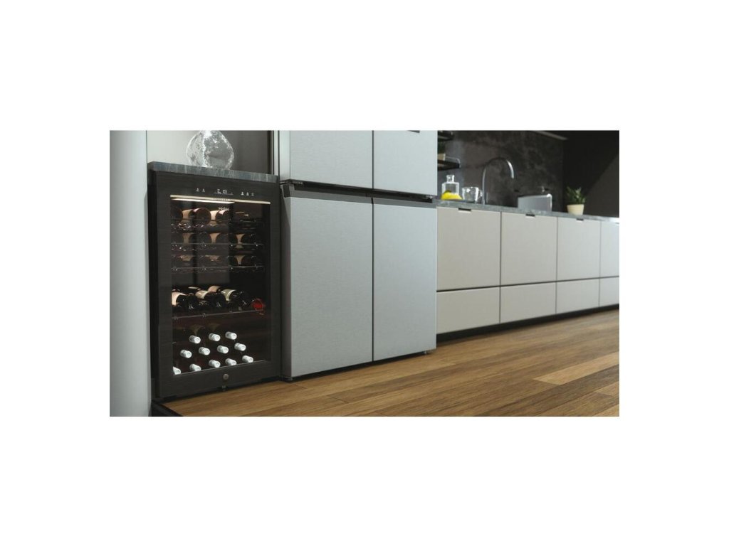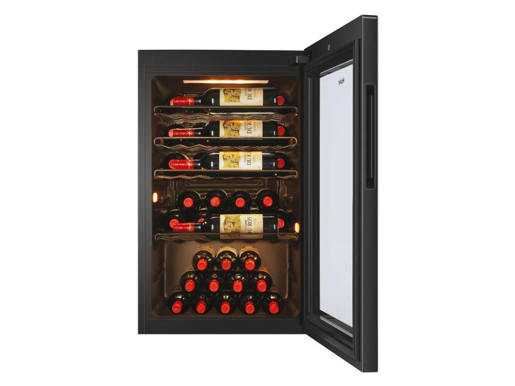- Voľne stojaca jednozónová vinotéka v energetickej triede F a v čiernom prevedení s úložnou kapacitou pre 49 fliaš.