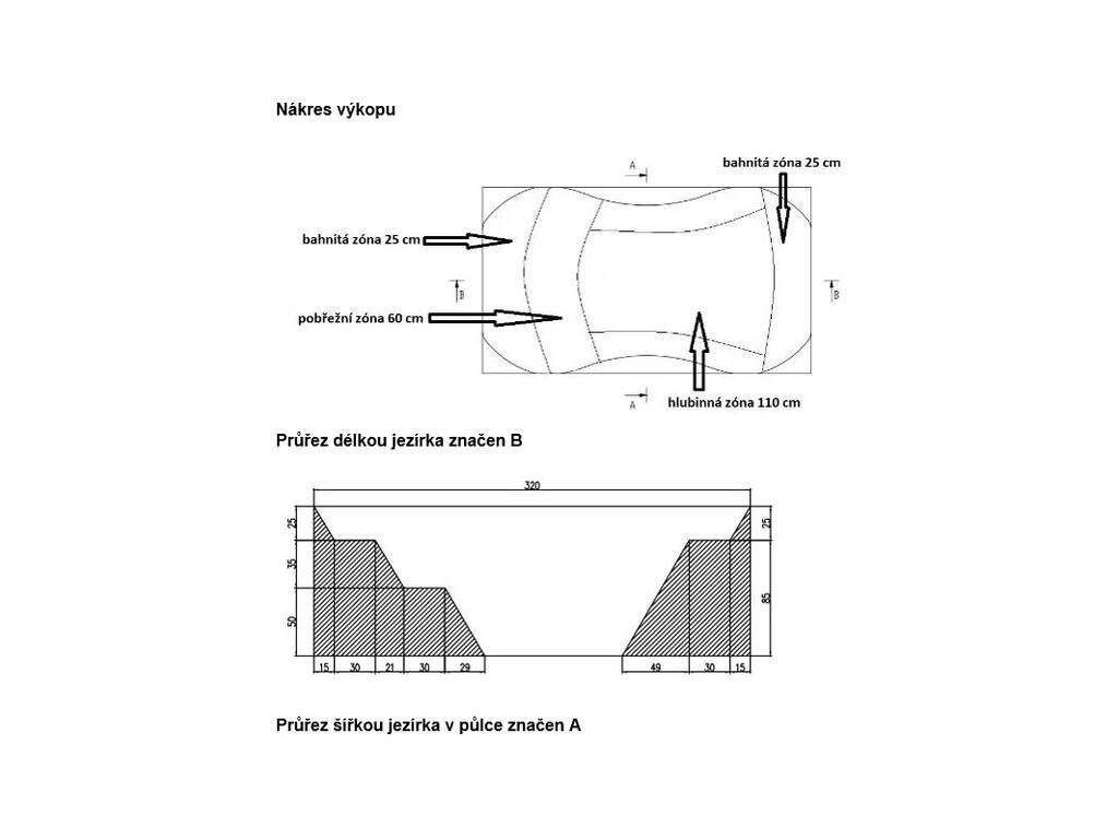 Pri stavbe jazierka môžete použiť náš návrh jazierka alebo si ho môžete prispôsobiť podľa priestoru vo vašej záhrade a vašich požiadaviek. Je len potrebné neprekročiť maximálnu veľkosť, ktorá je daná veľkosťou jazierkovej fólie, a to 2,2 x 3,2 a do hĺbky 1 m.