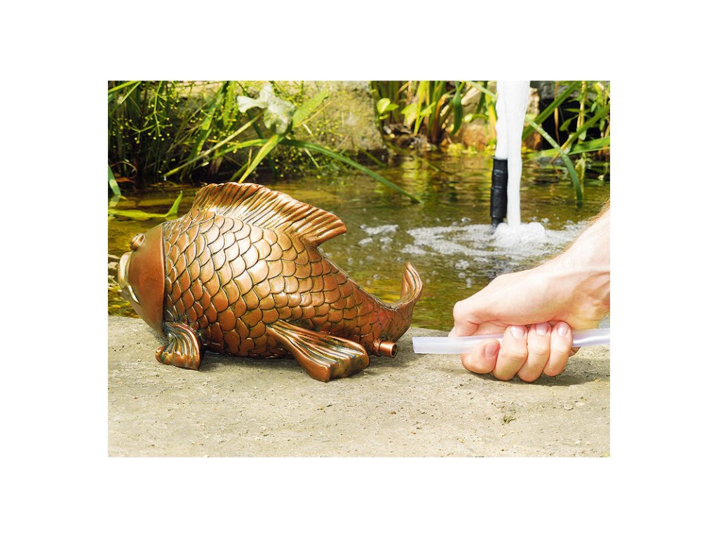 Chrlič neslúži len ako dekorácia, ale vďaka pohybu vody získate do jazierka dodatočný prísun kyslíka a pomáha udržiavať ekosystém jazierka. Je vybavený prípojkou na hadicu vrátane hadice na pripojenie k čerpadlu. Ľahko sa inštaluje na breh jazierka. Vhodné na použitie s čerpadlom Heissner HSP1000-00.