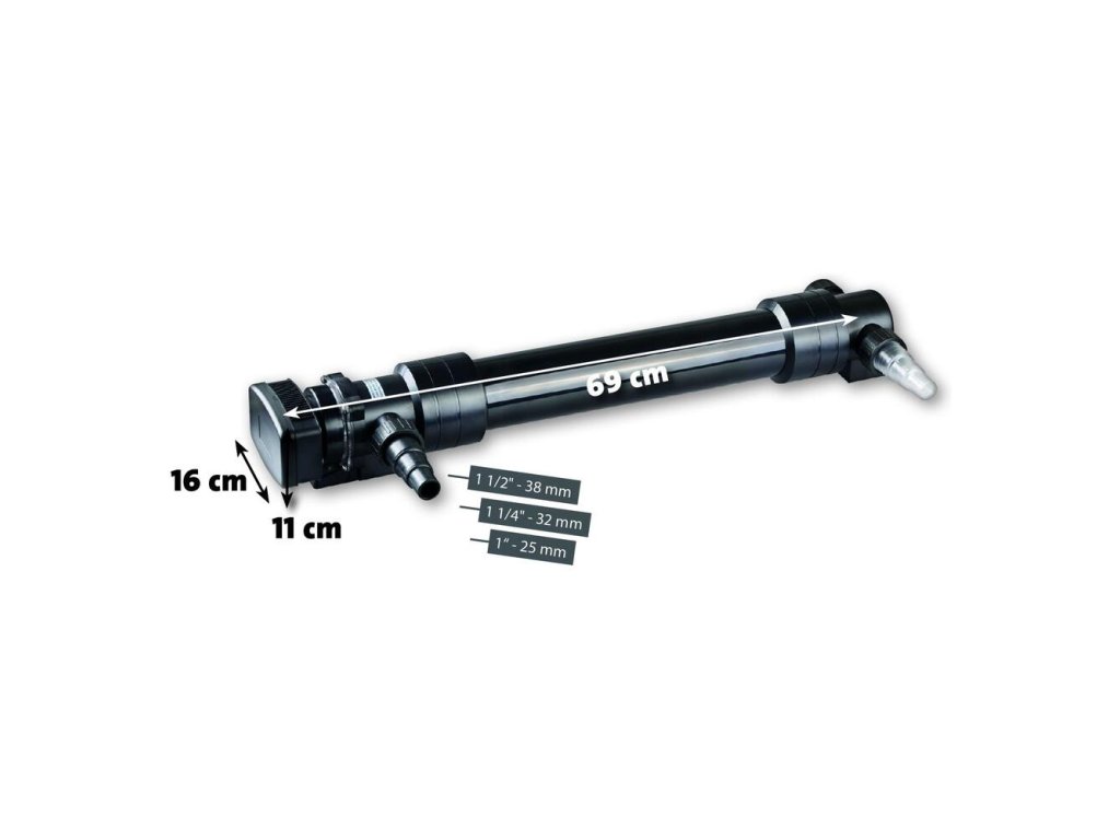 Lampa s výkonom 55 W sa používa na sterilizáciu a redukciu rias v jazierkach do objemu 60 m³. Je vybavená priezorníkom na overenie funkčnosti UV lampy. Až o 35 % vyšší výkon vďaka reflexným vnútorným povrchom, ktoré odrážajú UV žiarenie, čím je úspornejšia pri spotrebe a s rovnakým výsledkom. Rotačný prietok vody a vyrovnanie magnetizácie, ktoré spôsobuje výrazne menšie znečistenie kremíkovej trubice a neznižuje výkon UV žiarivky. Jednoduchá demontáž na výmenu UV trubice a čistenie UV kremíkového skla vrátane univerzálnych hadicových prípojok, praktických držiakov na pripevnenie na filtráciu alebo stenu. Zabudovaný bezpečnostný istič. Žiarivku v UV lampe sa odporúča vymeniť po sezóne, žiarivka svieti, ale už nemá dostatočný vyžarovací výkon. Zároveň odporúčame vyčistiť kremíkové sklo v lampe. Vhodnou náhradnou UV lampou je HEISSNER ZF455-00.