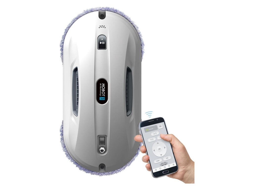 Robotický čistič okien HOBOT 368 možno ovládať pomocou smartfónu cez Bluetooth. Stačí si z obchodu App Store alebo Google Play bezplatne stiahnuť aplikáciu na ovládanie. Robota môžete ovládať aj pomocou diaľkového ovládania, ktoré je súčasťou balenia.