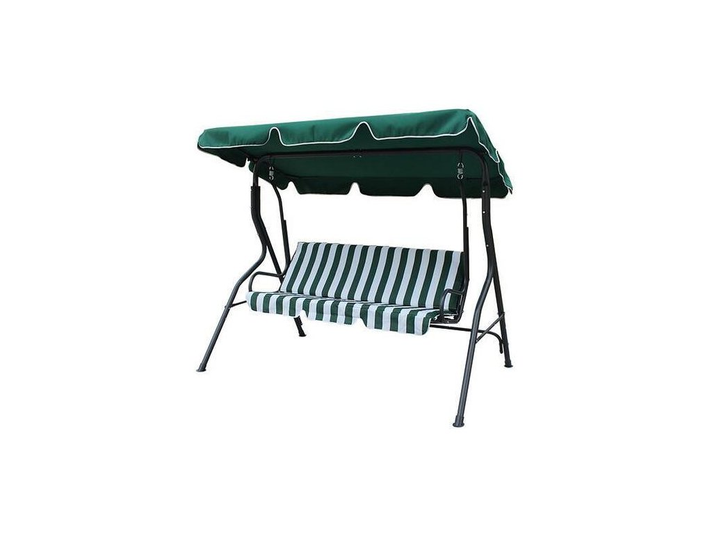 Záhradná hojdačka je príjemnej zelenej farby, čím krásne doplní každú záhradu. Hojdačka je zavesená na príslušnej kovovej konštrukcii, ktorá poskytuje stabilitu a pevnosť celej košntrukcie. Hojdačka ponúka tri miesta na sedenie s nosnosťou 150 kg. Vrch pokrýva nastaviteľná strecha, ktorá vás ochráni pred nechceným slnkom. Rozmery konštrukcie sú 175 x 110 x 160 cm.