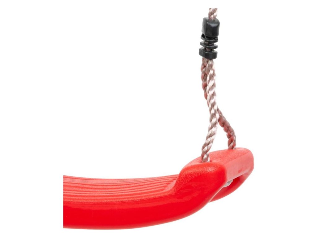 Detská červená plastová hojdačka je praktická, ľahko umiestniteľná takmer kdekoľvek vo vašej záhrade. Hojdačka nemá opierku a nemá ani prednú ochranu pred pádom, preto je potrebné na dieťa dávať pocelý čas pozor. Nosnosť hojdačky je 70 kg a jej rozmery sú 43 x 17 x 8,5 cm. Na oboch stranách sedacej časti sú pripevnené laná dlhé 2 m, s priemerom 10 mm. Je potrebné ich poriadne uviazať na miesto, kde chcete hojdačku mať. Uistite sa, že je pripevnená správne, nie príliš vysoko, a že nehrozí riziko poranenia.