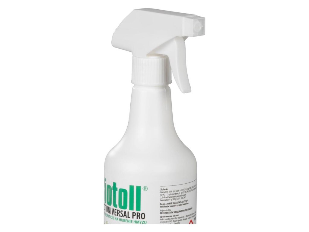Insekticid Biotoll® Universal na hmyz, 500 ml, s kontaktným predľženým účinkom je určený na ničenie hmyzu -múch, švábov, mravcov v obytných priestoroch, komorách, pivniciach, terasách . Prípravok má príjemnú vôňu a nezanecháva stopy.