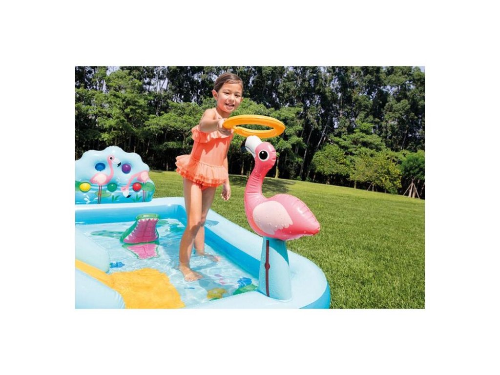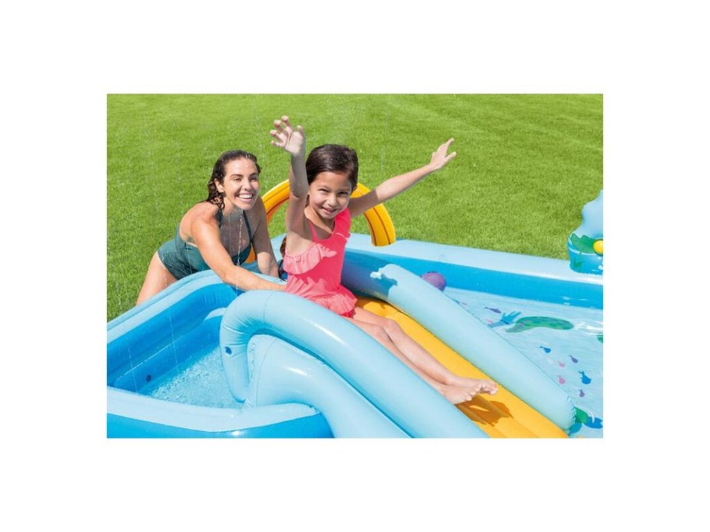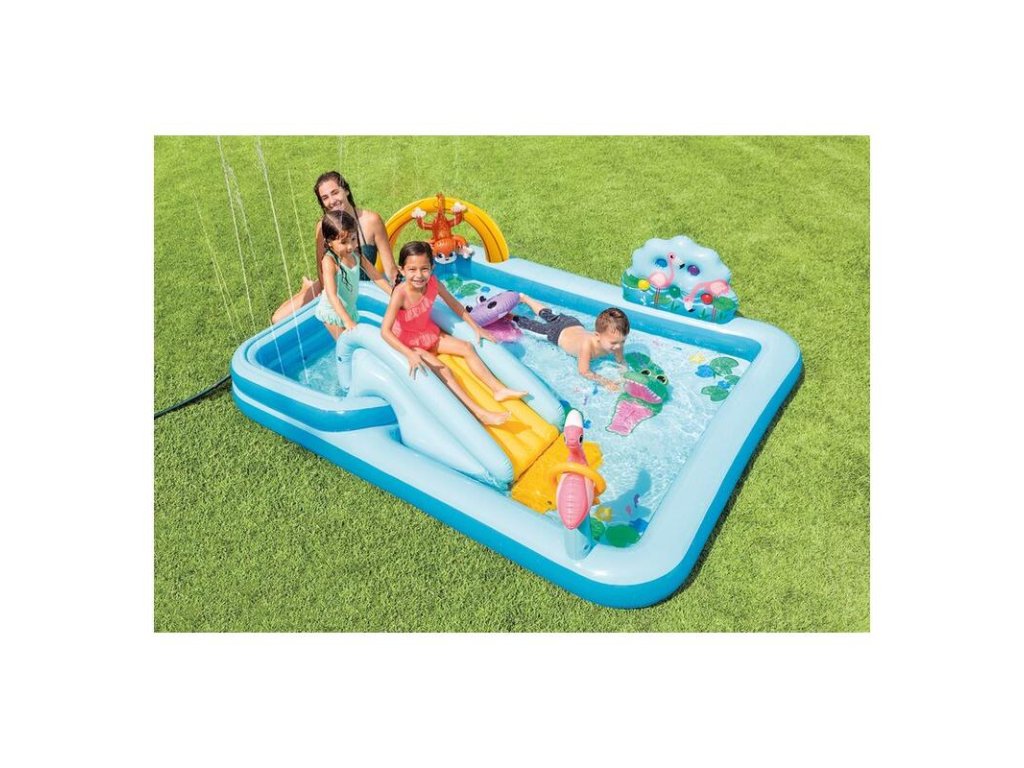 Užite si zábavné chvíle s bazénikom Intex 57161 Jungle adventure play center! Deti zažijú zábavu s nafukovacou palmou, plameniakom, opicou, krokodílom, nosorožcom, 5 loptičkami a krúžkami na hranie. Približná veľkosť hracieho centra je 2,44 m x 1,98 m x 71 cm. Možnosť zapojenia záhradnej hadice a vytvoriť tak vodotrysky z bazéna pre ešte väčšiu zábavu vo vode. Hracie centrum je vybavené nafukovacou podlahou a vypúšťacím ventilom.