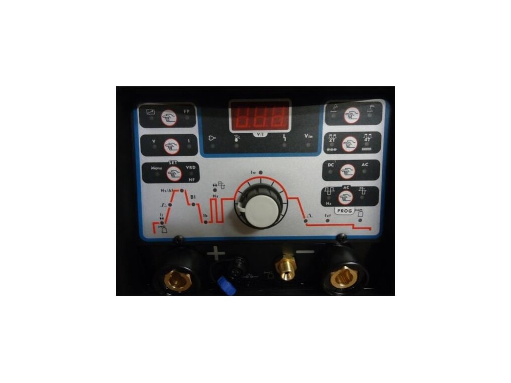Na jednoduchom prehľadnom panely má širokú možnosť nastavovania: napríklad predfuk a dofuk plynu, dobeh prúdu, 2 a 4 takt.