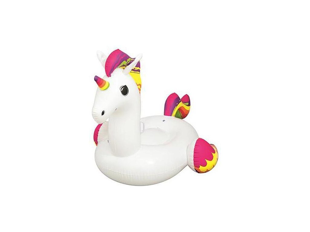 Farebný, nafukovací jednorožec je zábavnou pomôckou na kúpanie nie len pre deti, ale aj pre dospelých. Jednorožec je určený na použite vo vode. Veľká plocha umožňuje relaxovanie alebo opaľovanie. Robustné rukoväte uľahčujú manévrovanie nafukovačky vo vode. Jednorožec je vyrobený z odolného, pevného vinylového materiálu. Bezpečnostné ventily umožňujú jednoduché a rýchle nafúknutie alebo vyfúknutie.
