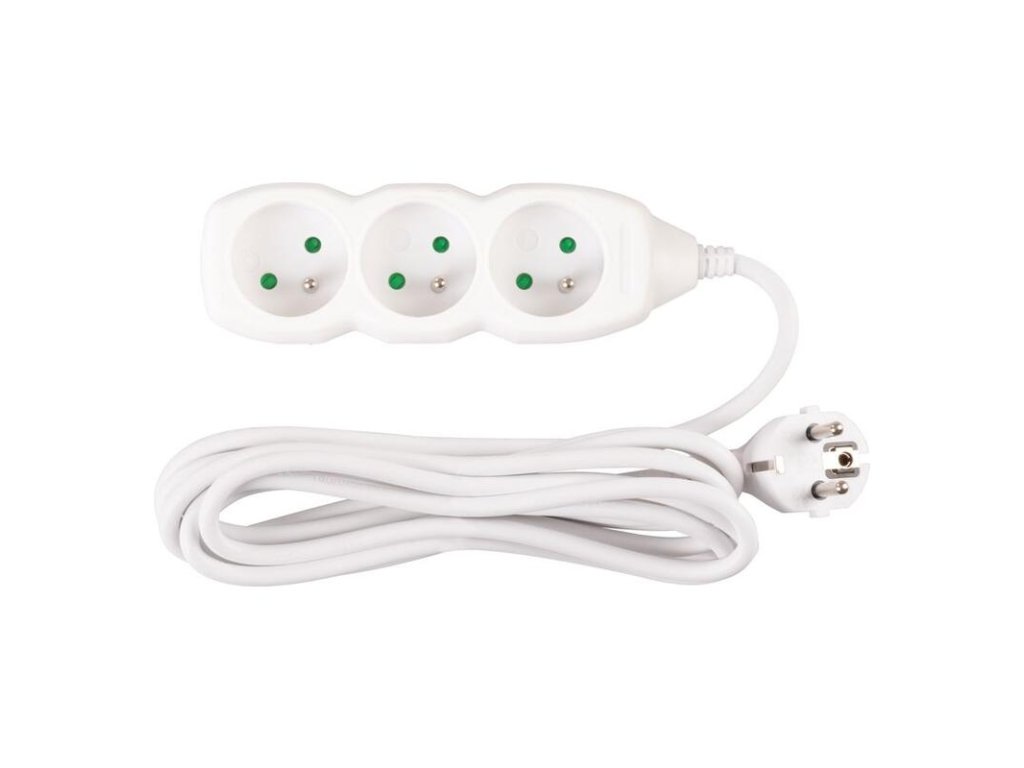 Praktický predlžovací kábel DG-F803B v bielej farbe zabezpečí prívod elektrickej energie až do dĺžky 3 metre. Svoje využitie nájde v kanceláriách, ale aj v domácnostiach. Vďaka trom zásuvkám umožňuje pripojenie viacero zariadení naraz.