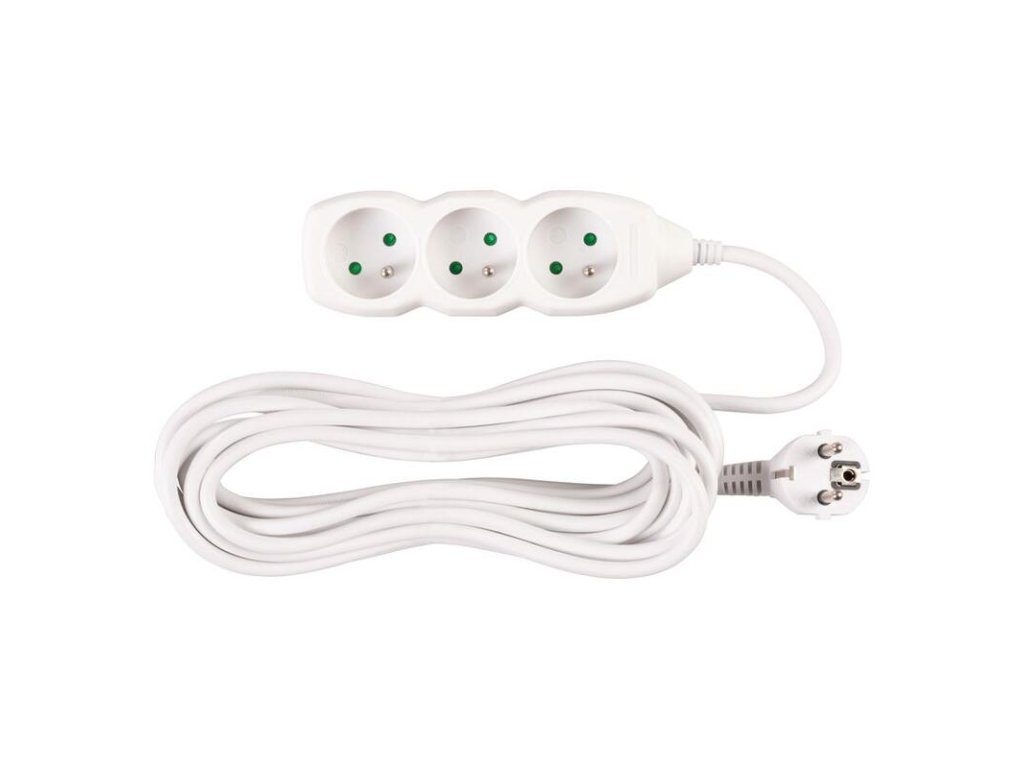 Praktický predlžovací kábel DG-F803B v bielej farbe zabezpečí prívod elektrickej energie až do dĺžky 5 metrov. Svoje využitie nájde v kanceláriách, ale aj v domácnostiach. Vďaka trom zásuvkám umožňuje pripojenie viacero zariadení naraz.