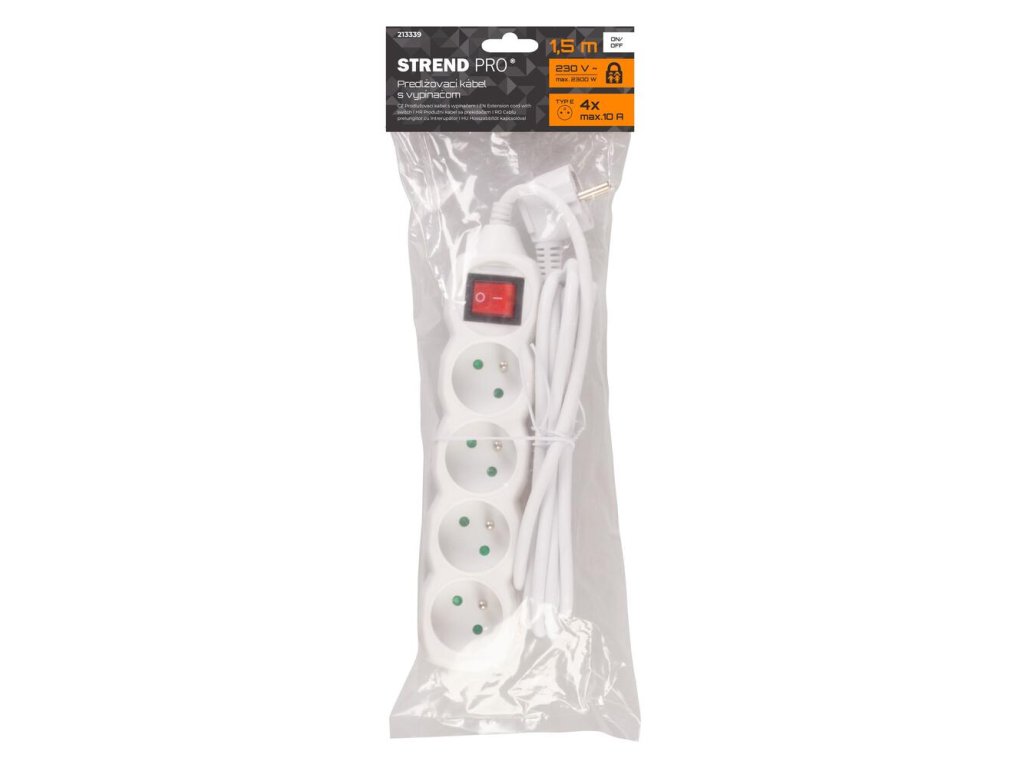 Praktický predlžovací kábel DG-F804B v bielej farbe zabezpečí prívod elektrickej energie až do dĺžky 1,5 metra. Svoje využitie nájde v kanceláriách, ale aj v domácnostiach. Vďaka 4 zásuvkám umožňuje pripojenie viacero zariadení naraz. Kábel disponuje praktickým ON/OFF prepínačom. Vypnutím hlavného vypínača prerušíte prívod elektrickej energie ku všetkým zapojeným spotrebičom.