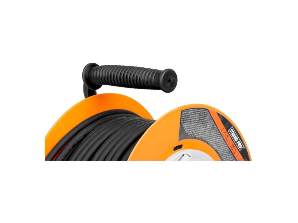 Kvalitný predlžovací kábel Strend Pro CR038 v oranžovom prevedení namotaný na bubne je dlhý 30 metrov. Efektívne rozšíri prívod elektriny do vzdialených miest. Na bubne má štyri zásuvky (230 V), takže môžete napájať viacero zariadení naraz. Svoje využitie nájde vo firmách aj záhradách.