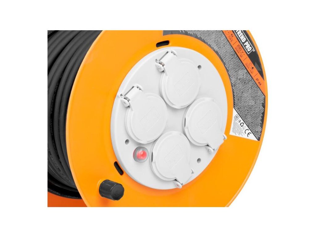 Kábel Strend Pro CR038, 4 zásuvky, L-30 m, IP44, guma, predlžovací, na bubne