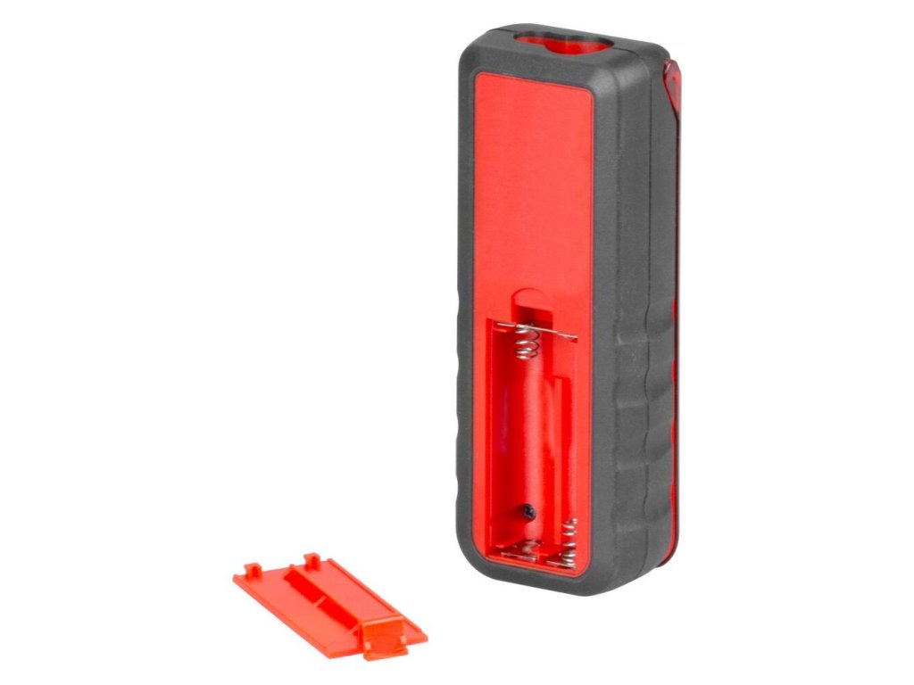 - Merač má pogumované, protišmykové telo a je vybavený podsvieteným LCD displejom a ukazovateľom životnosti batérií.