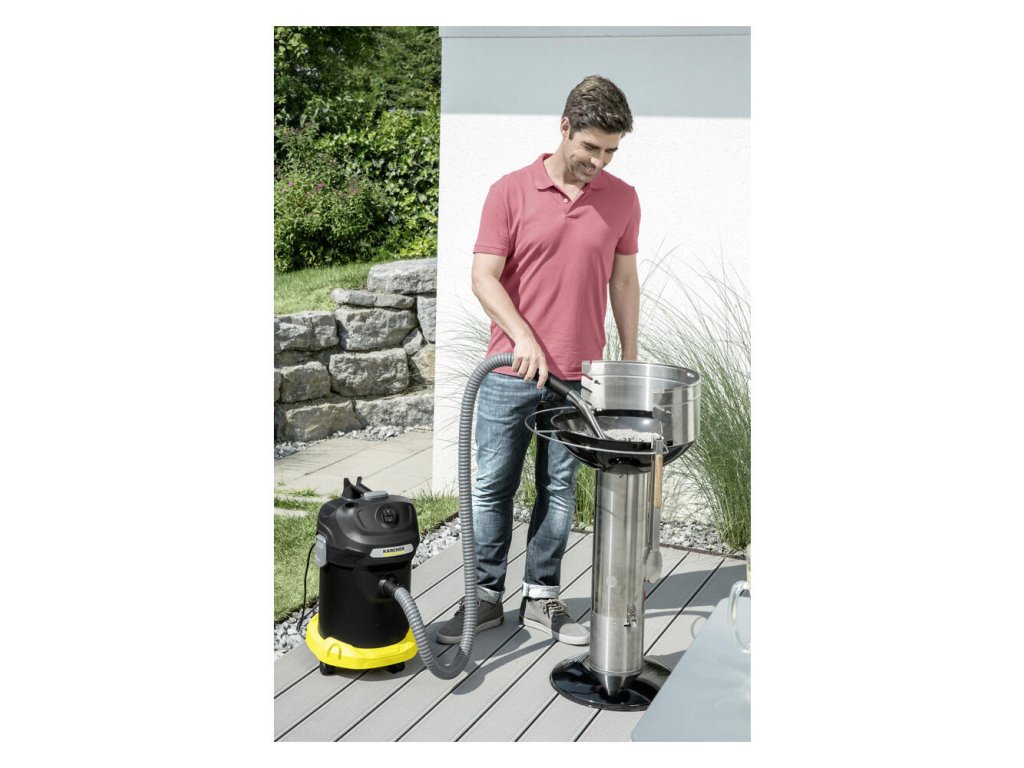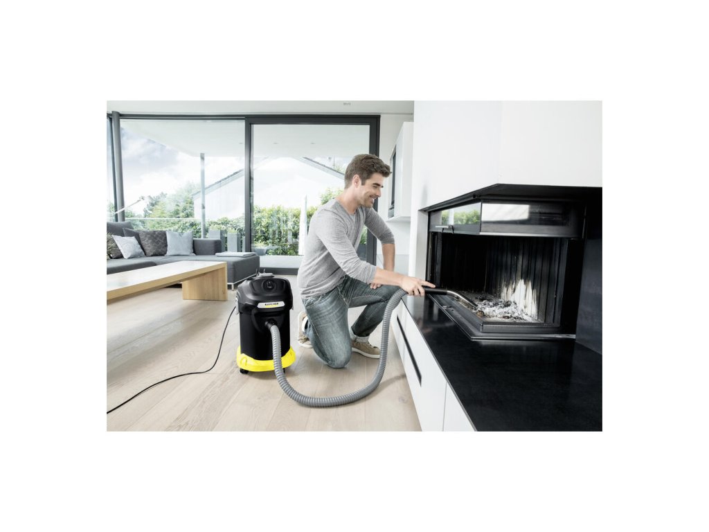 Vysávač popola a suchých hmôt AD 4 Premium s filtrom odpadového vzduchu láka vysokou a permanentnou sacou silou. Jeho systém oklepu filtra vyčistí zanesený filter stlačením gombíka, takže sa bleskovo opäť zvýši sacia sila. O rýchle a pohodlné vyprázdňovanie nádoby na nečistoty bez kontaktu so špinou sa postará 1-dielny filtračný systém (s odolným plochým skladaným filtrom a kovovým filtrom na veľké nečistoty), ako aj praktická rúčka na nádobe. Kvalitné ohňovzdorné materiály okrem toho ponúkajú maximálnu bezpečnosť pri vysávaní studeného popola. Vďaka zošikmenej ručnej hubici odsajete popol komfortne bezo zvyšku – aj v kútoch a na ťažko prístupných miestach v krbe. Spolu s podlahovou hubicou na tvrdé plochy patriacou do štandardnej výbavy a kvalitne pochrómovanými sacími trubicami sa môže AD 4 Premium používať ako plnohodnotný suchý vysávač. Rovnako praktické je aj odkladanie kábla alebo aj pozícia opretia sacej hadice alebo sacích trubíc s podlahovou hubicou pri prestávkach v práci.
