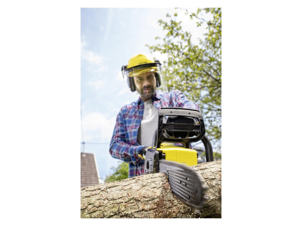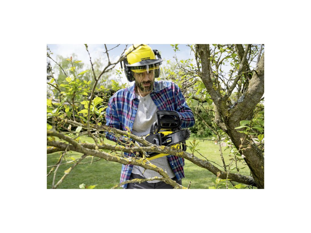Akumulátorová reťazová píla CNS 18-30 Battery od spoločnosti Kärcher je vhodná vďaka svojej nízkej hmotnosti a ideálnej dĺžke lišty na pohodlné a univerzálne používanie pri starostlivosti o stromy. Jej vynikajúca rýchlosť reťaze zabezpečí rýchle a ľahké rezanie od ruky. Upínací systém reťaze bez použitia nástroja a automatické mazanie reťaze akumulátorovej reťazovej píly zaistí jednoduchú obsluhu. Kombinácia brzdy reťazovej píly a dvojčinného odblokovania ešte zvýši jej bezpečnosť. Súčasťou dodávky je prístroj, lišta, reťaz, kryt na lištu a olejová fľaša.