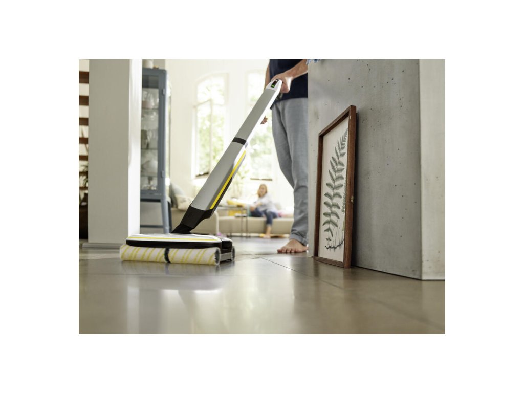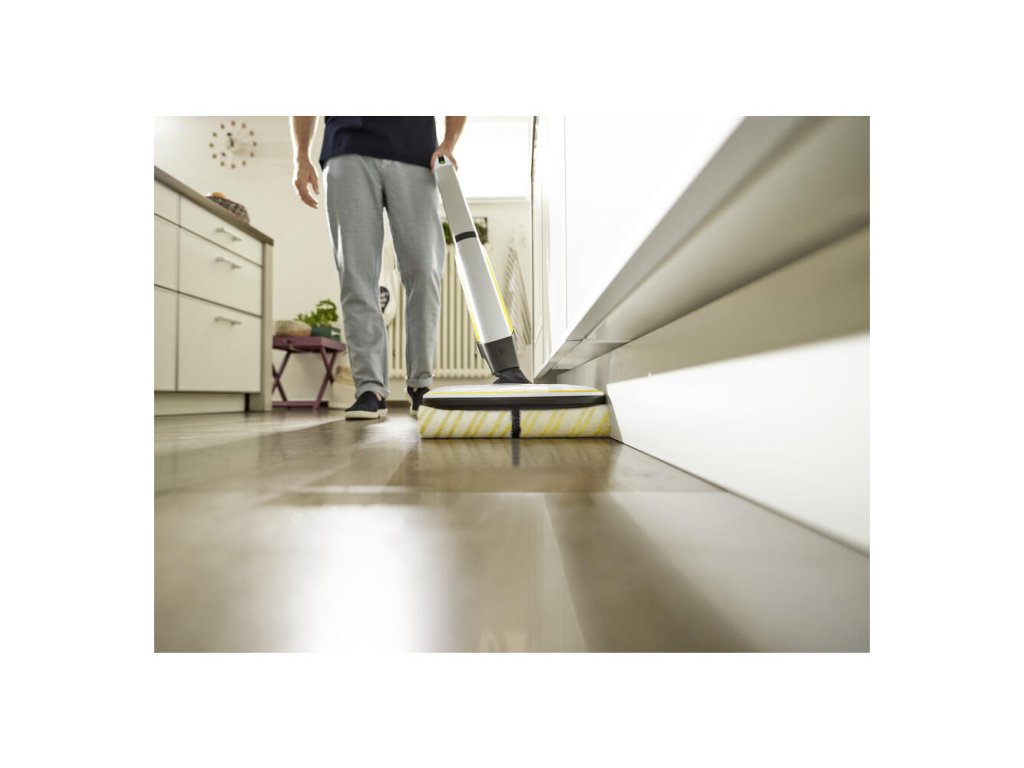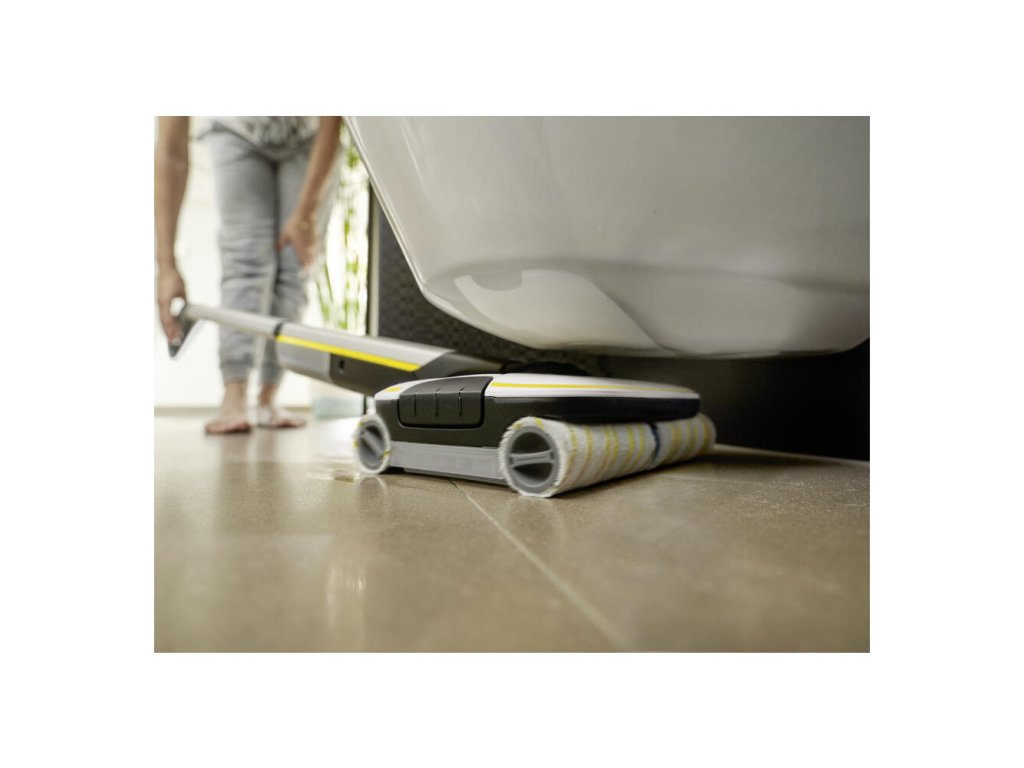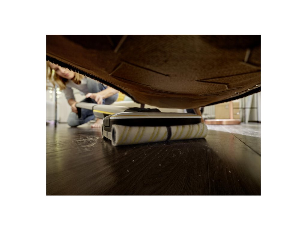 Akumulátorový čistič tvrdých podláh FC 7 odstraňuje suché aj mokré každodenné nečistoty v jednom kroku. Pred utieraním už nie je potrebné vysávať, čo šetrí polovicu času **. Jeho štvorvalcová technológia s protibežným otáčaním umožňuje rýchle a efektívne čistenie s odstraňovaním každodenných nečistôt a hladkým kĺzaním po podlahe. Vlasy sa zachytávajú bez problémov vďaka vlasovému filtru. Podlahy sú až o 20% čistejšie ako pri bežných mopoch * a samozrejme až po okraj. Ťažkosti s ťahaním vedra sú minulosťou, pretože podlahový čistič má nádrž na čistú vodu aj nádrž na odpadovú vodu. Taktiež už nedochádza ku priamemu kontaktu s nečistotami, pretože valce sú neustále vlhčené čistou vodou a znečistená voda končí priamo v nádrži na odpadovú vodu. Objem čistej vody a rýchlosť otáčania valcov sa dajú nastaviť v dvoch režimoch čistenia. K dispozícii je tiež funkcia BOOST na nepoddajné nečistoty. Výdrž batérie je 45 minút, čo je dosť na vyčistenie plochy približne 135 m². Zariadenie je vhodné pre všetky tvrdé podlahy (dlažba, parkety, laminát, PVC, vinyl).
