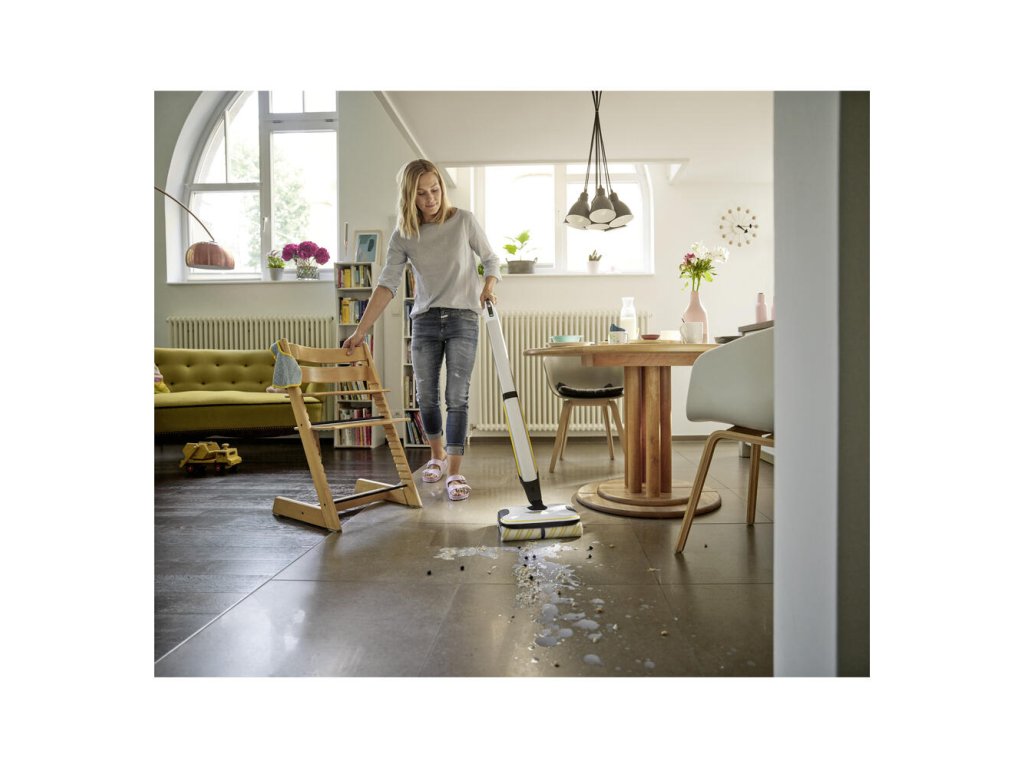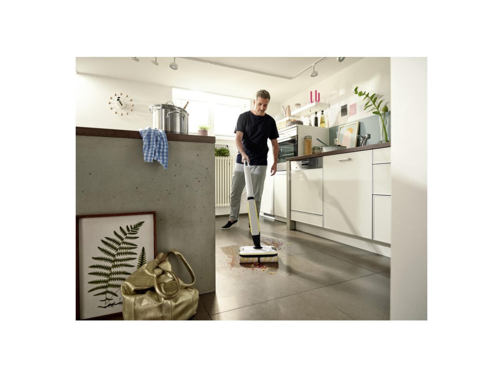 ** Podlahové čističe Kärcher dokážu skrátiť čas čistenia na polovicu, pretože bežné nečistoty v domácnosti odstránite z tvrdých podláh jediným krokom, čím sa odstráni potreba vysávania pred utieraním.