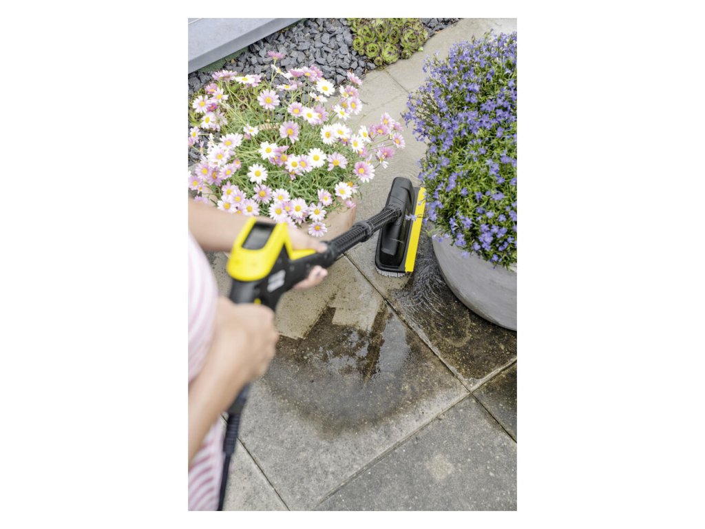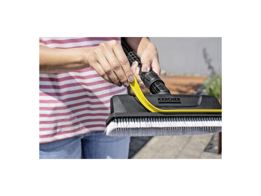 Kefa Power PS 30 zabezpečí žiarivé výsledky čistenia na najrôznejších povrchoch. To zabezpečujú 3 vysokotlakové dýzy, ktoré uvoľnia aj odolné nečistoty. Vďaka tomu je PS 30 ideálnym pomocníkom pre spoľahlivé čistenie malých až stredne veľkých plôch ako sú schody a hrany. Hlavu kefy je možné otočiť o 360 °, aby ste sa dostali na ťažko prístupné miesta. Po vyčistení je možné všetky hladké povrchy stiahnuť pomocou integrovanej stierky na nečistoty. Týmto spôsobom sa prebytočná odpadová voda rýchlo odstráni a plochy sa môžu okamžite znovu používať. Táto kombinácia vysokotlakového prúdu a ručného tlaku kefy sa rovná pri čistení bežnej kefe, ktorá sa dostane až do kútov a je možné ju kombinovať so všetkými vysokotlakovými čističmi triedy K 2 až K7 od spoločnosti Kärcher.