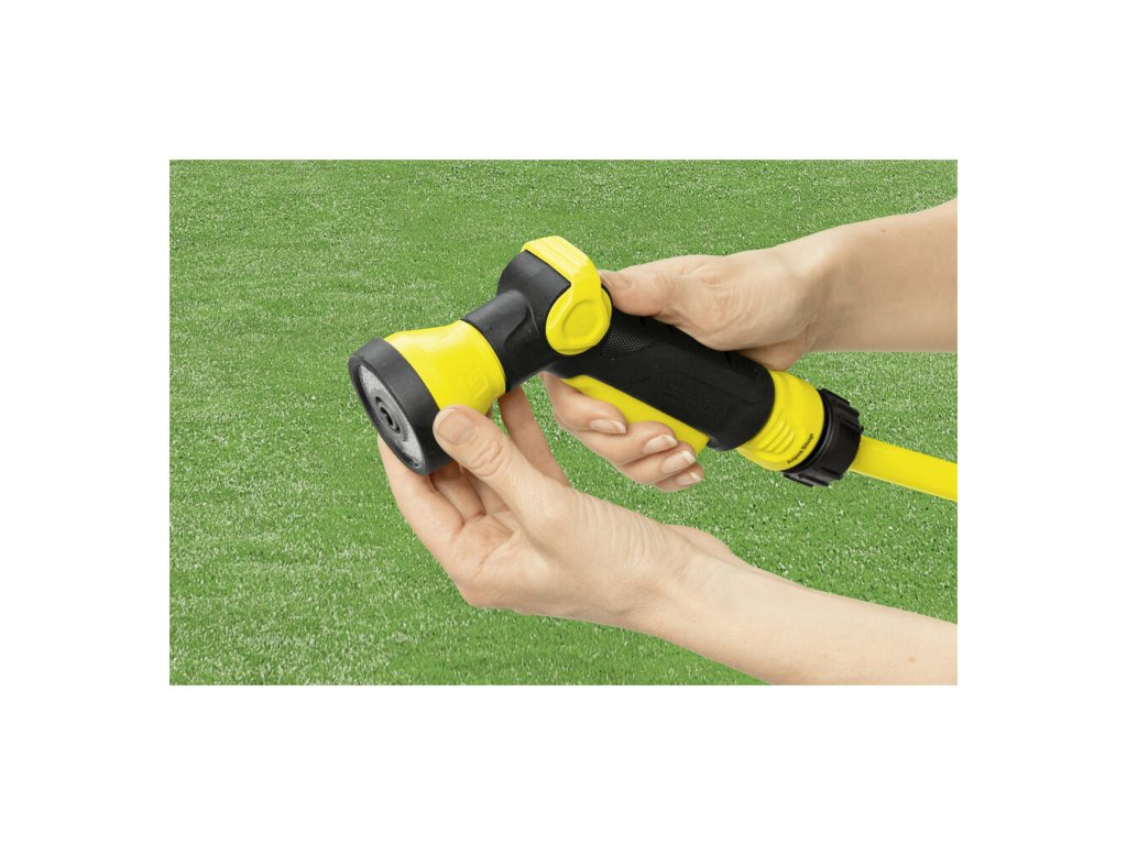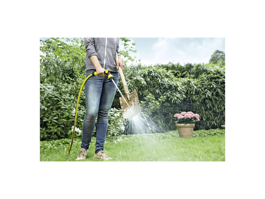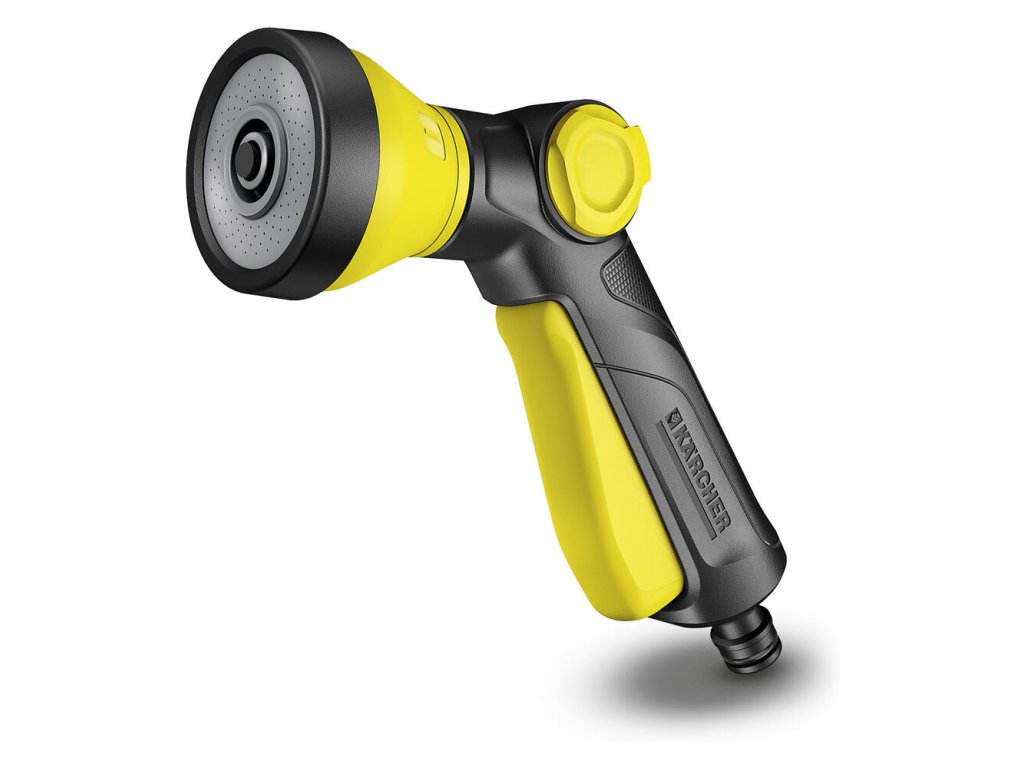 Táto multifunkčná striekacia pištoľ sa obzvlášť hodí na zavlažovanie najrozličnejších rastlín s rôznymi nárokmi. Multifunkčná striekacia pištoľ s 3 tvarmi rozstrekovaného prúdu: sprcha, bodový a kužeľový prúd. Takto jednoducho môžete zavlažovať kvetinové a rastlinné záhony (sprcha a kužeľový prúd), a súčasne aj oslobodiť terasy a záhradný nábytok od hrubej špiny (bodový prúd). Preto sa táto multifunkčná striekacia pištoľ veľmi dobre hodí na zavlažovanie ako aj na čistenie. Okrem toho disponuje aretovateľnou spúšťou na rukoväti, ktorá sa postará o pohodlnú manipuláciu a permanentný prietok vody. Ergonomický a jednoručne ovládateľný regulačný ventil okrem toho umožňuje prispôsobovanie prietoku podľa potreby. Mimochodom: Postrekovače Kärcher sú kompatibilné s všetkými dostupnými klik systémami a dajú sa ľahko napojiť na záhradnú hadicu.