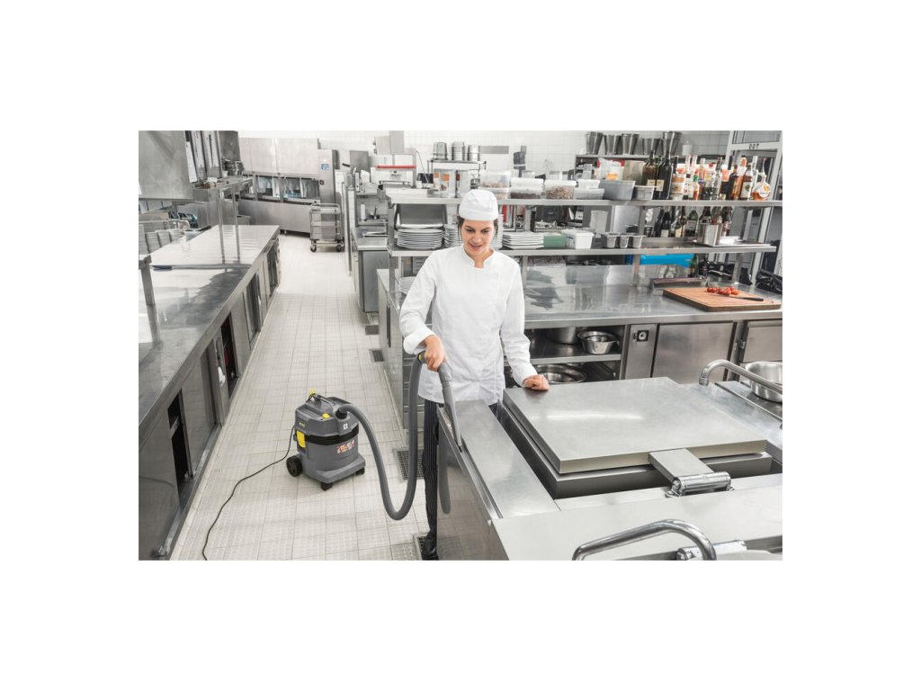 Remeselníci tohto malého siláka určite ocenia. Náš mokro-suchý vysávač NT 22/1 Ap Te disponuje prístrojovou zásuvka s automatickým vypínaním a zapínaním pre elektronáradie, je veľmi ľahký, a teda sa vždy jednoducho prepravuje, a navyše presviedča silným sacím výkonom pri ľahkých až stredne ťažkých čistiacich prácach. Či ide o prach, hrubú špinu alebo kvapaliny: Vďaka poloautomatickému oklepu filtra a PES patrónovému filtru odolnému proti vlhkosti spoľahlivo a dôkladne vybaví svoju prácu. Prípojka sacej hadice integrovaná priamo v hlave stroja pritom umožňuje maximálne využitie objemu nádoby. Týmto je tento jednoducho ovládateľný a všestranný NT 22/1 Ap Te ideálnym spoločníkom pri inštalačných a renovačných prácach, pri čistení budov a mnohom inom profesionálnom použití.