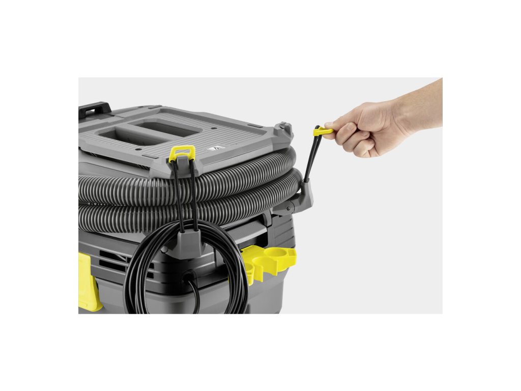 Náš NT 30/1 Ap L je kompaktný a kvalitný mokro-suchý strednej triedy s poloautomatickým oklepom filtra. Vysávač sa hodí na veľké množstvo použití, ako je čistenie interiéru áut, odstraňovanie veľkých nečistôt a kvapalín alebo na odsávanie strojov a zariadení. Pritom robí dojem extrémne dobrým sacím výkonom a vysoko efektívnym oklepom filtra, ktoré vo vzájomnej súhre dokonca dovoľujú odstraňovanie stredného množstva jemného prachu, dokonca aj bez filtračného vrecka. Tento stroj, ktorý sa veľmi jednoducho obsluhuje pomocou centrálneho prepínača, presviedča okrem toho svojou nízkou hmotnosťou a premysleným odkladaním kompletne novo vyvinutého príslušenstva – až po plochú hlavu, ktorá disponuje ďalšími možnosťami upevnenia a môže sa na ňu položiť a upevniť napríklad kufor na náradie.