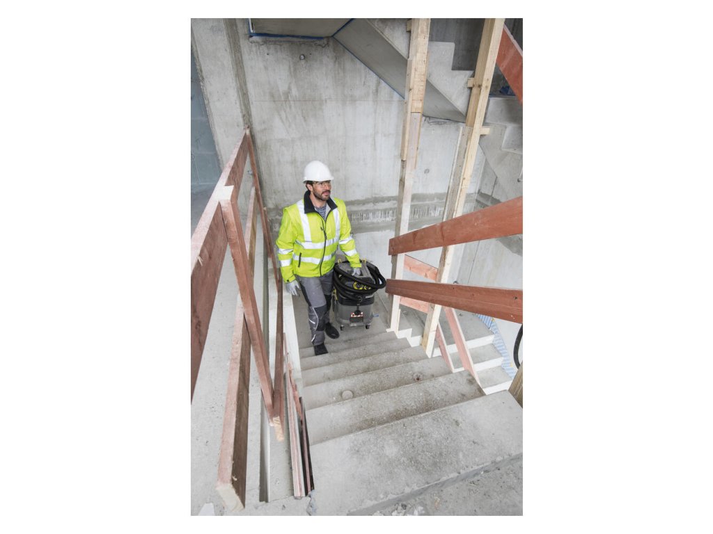 Na stavbách a v dielňach vzniká každý deň nebezpečný jemných prach rôzneho druhu, ktorý sa čiastočne môže dostať do pľúc. Vďaka novému plne automatickému oklepu filtra odstráni náš kompaktný mokro-suchý vysávač 30/1 Tact Te M skutočne veľké množstvá jemného prachu pri súčasne zaručenej 99,9 percentnej efektívnosti filtrácie. Oklep filtra a sací výkon pritom nepretržite kontroluje a reguluje elektronika ovládaná senzormi. Vďaka integrovanej prístrojovej zásuvke s automatickým zapínaním, ako aj kompletnému antistatickému systému (vrátane vodivého príslušenstva) sa tento stroj hodí hlavne na priame odsávanie elektronáradia produkujúceho prach. Prach usadený na podlahe alebo strojoch je možné pomocou novo vyvinutého príslušenstva, ktoré sa bezpečne odkladá na stroji, dôkladne a kompletne nasať do pevnej 30-litrovej nádoby s kovovými otočnými kolieskami a nárazníkom.