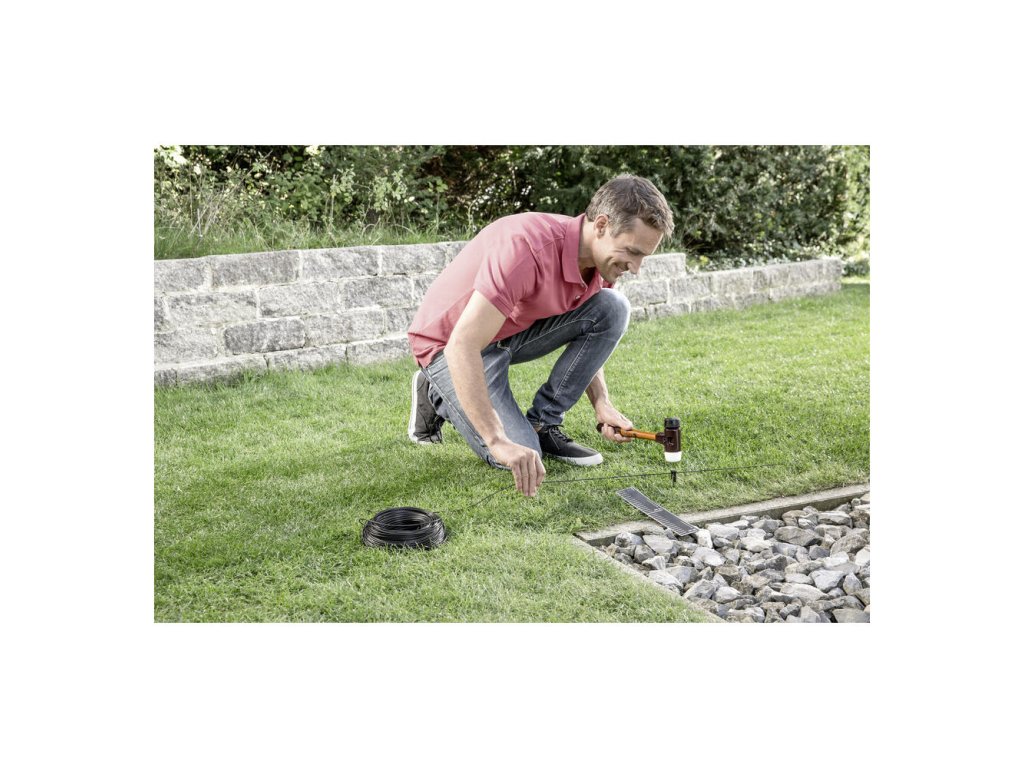 Presné definovanie kosenej plochy pomocou 150 metrov dlhého obvodového kábla. V priestore vymedzenom obvodovým drôtom sa môže robotická kosačka spoľahlivo pohybovať.
