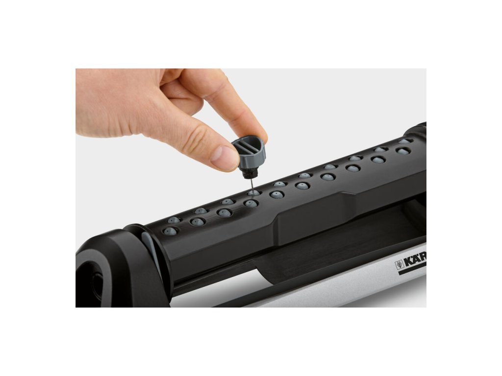 Štvorcový zavlažovač OS 5.320 SV reguláciou zavlažovanej šírky slúži na zavlažovanie stredne veľkých a veľkých plôch a záhrad. Maximálna zavlažovaná plocha štvorcového zavlažovača je 320 m2. Prietok vody inovačného rozprašovacieho zavlažovača sa dá podľa potreby nastaviť - od nuly po maximum. V závislosti od požiadavky sú zavlažovače Kärcher vybavené hrotmi alebo klzákmi. Nové štvorcové zavlažovače Kärcher sa pritom vyznačujú celkovo jednoduchšou obsluhou. Majú integrovanú ochranu proti postriekaniu (Splash-Guard), ktorá umožňuje pohodlnú inštaláciu a nastavenie zariadenia bez toho, aby ste sa pri tom namočili. Samozrejme sú všetky zavlažovače Kärcher vybavené osvedčeným klik systémom a dajú sa jednoducho napojiť na záhradnú hadicu.